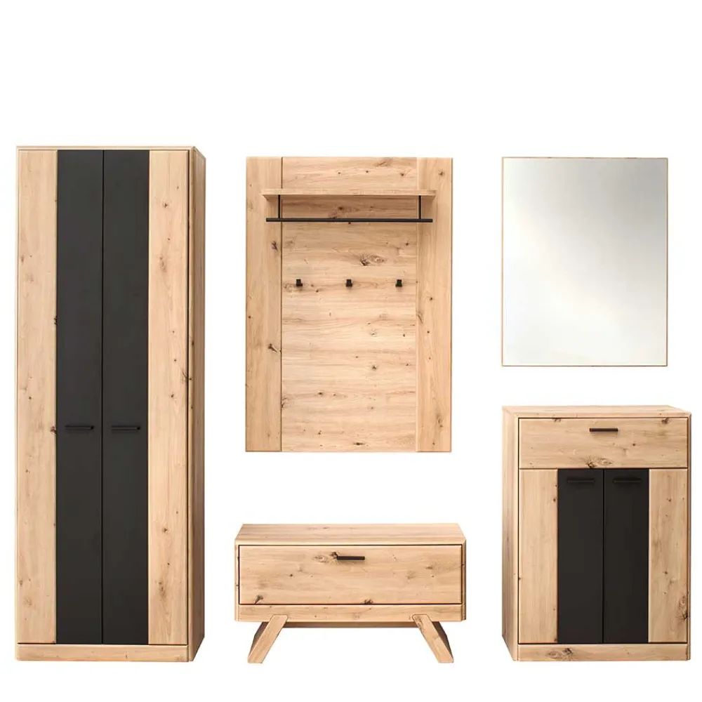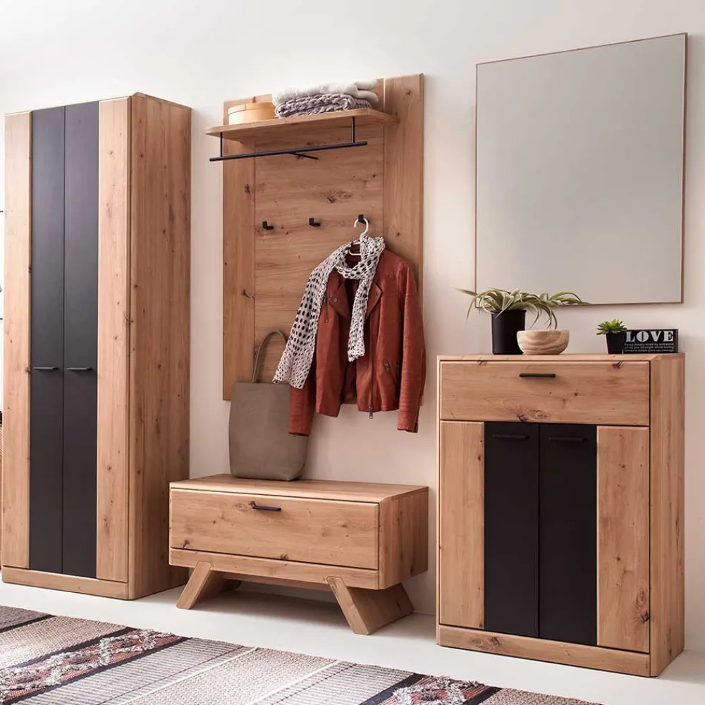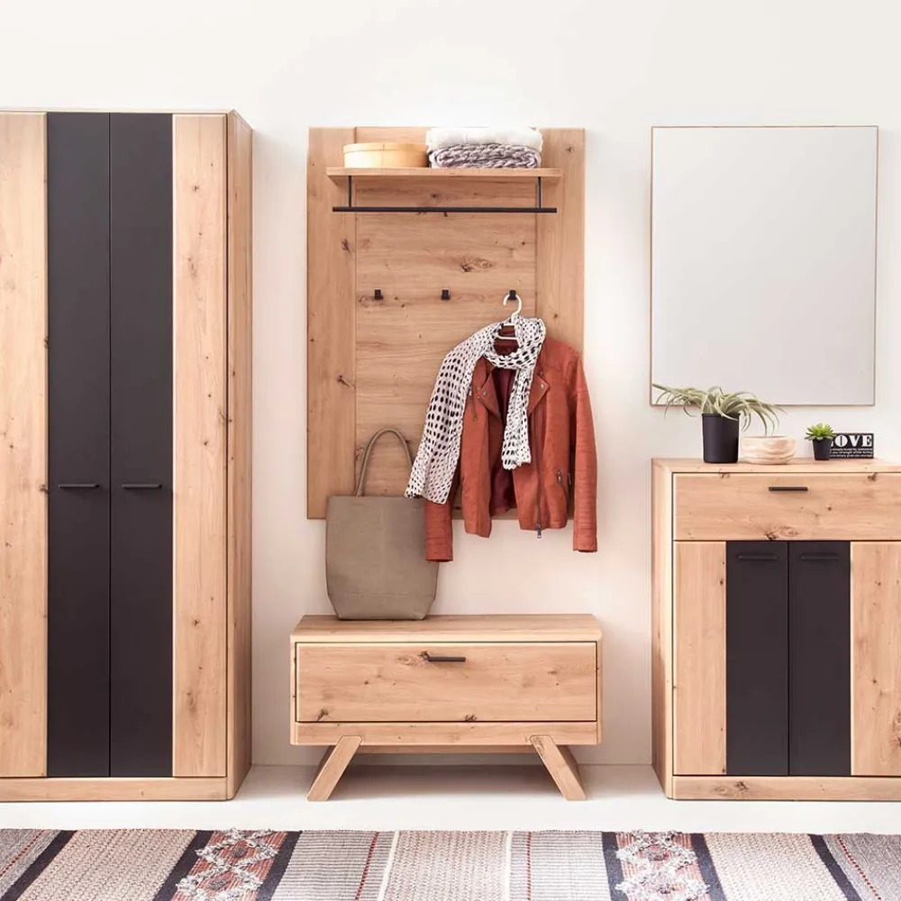 - Großzügige Garderobenkombination in Eichefarben und dunkel Grau