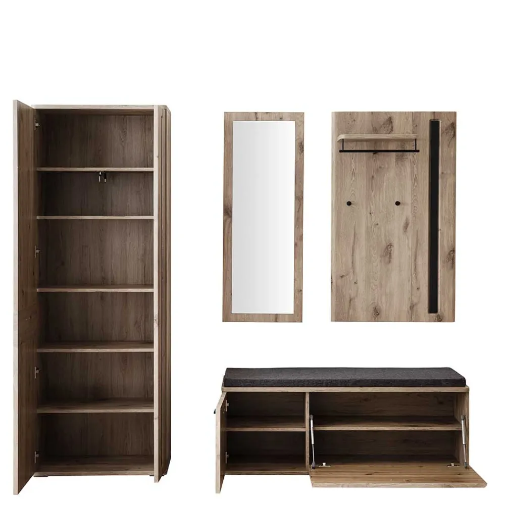 - Aktuelle Garderobenmöbel in Wildeichefarben und Dunkelgrau