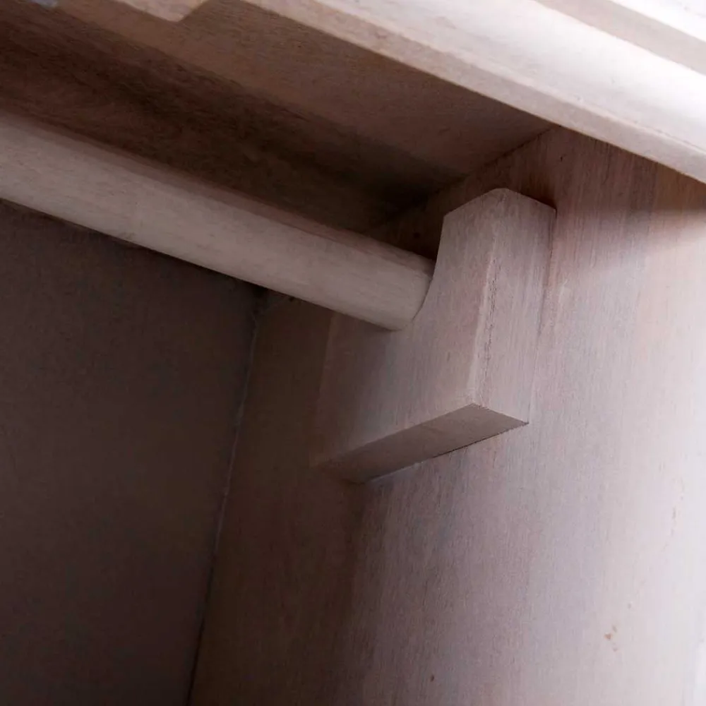 - Innen drei Einlegeböden und eine Holz-Kleiderstange