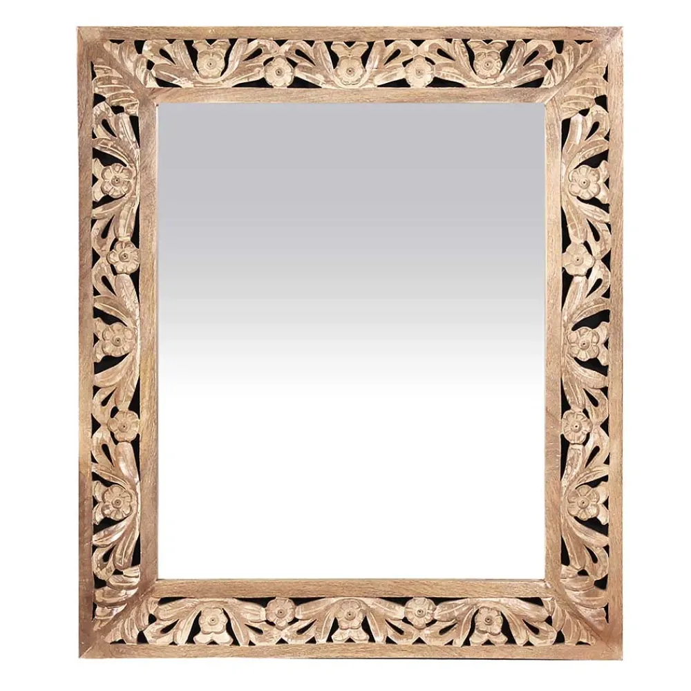 - Hergestellt aus massivem Mangobaumholz und Spiegelglas