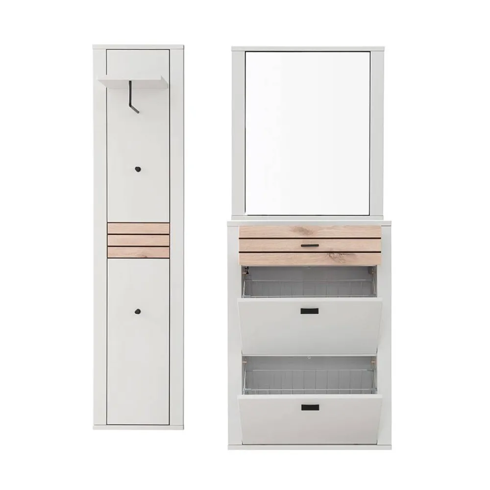 - Trendige Garderobenmöbel in Lichtgrau und Wildeichefarben