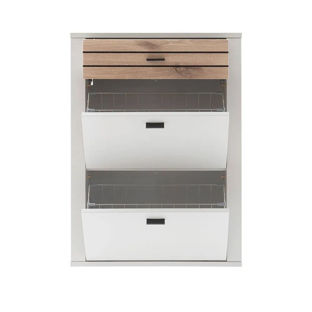 - Innen befinden sich zwei Doppel-Metallschuhkörbe