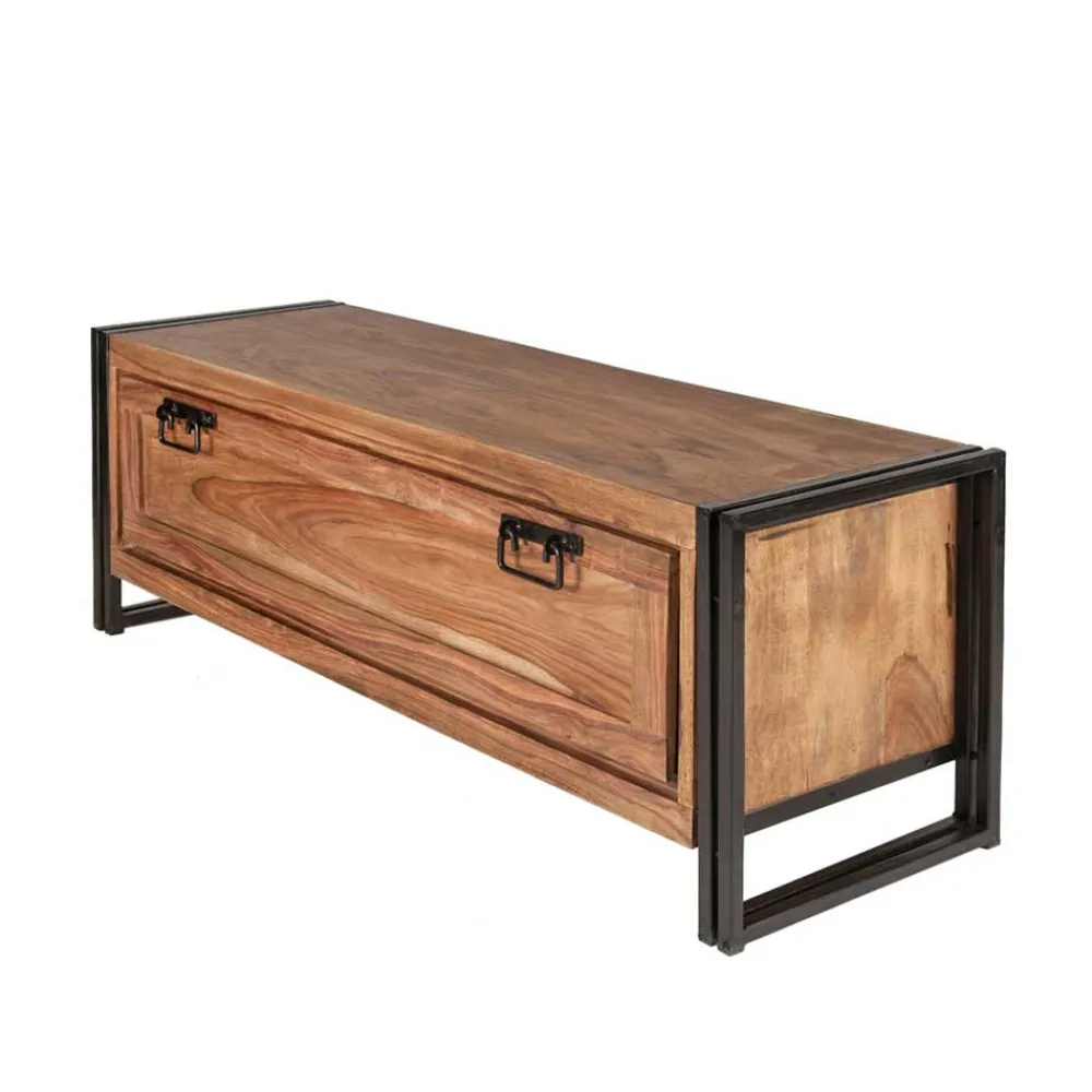 - Gebeizte und lackierte Holzoberfläche, Metallgestell antikschwarz lackiert