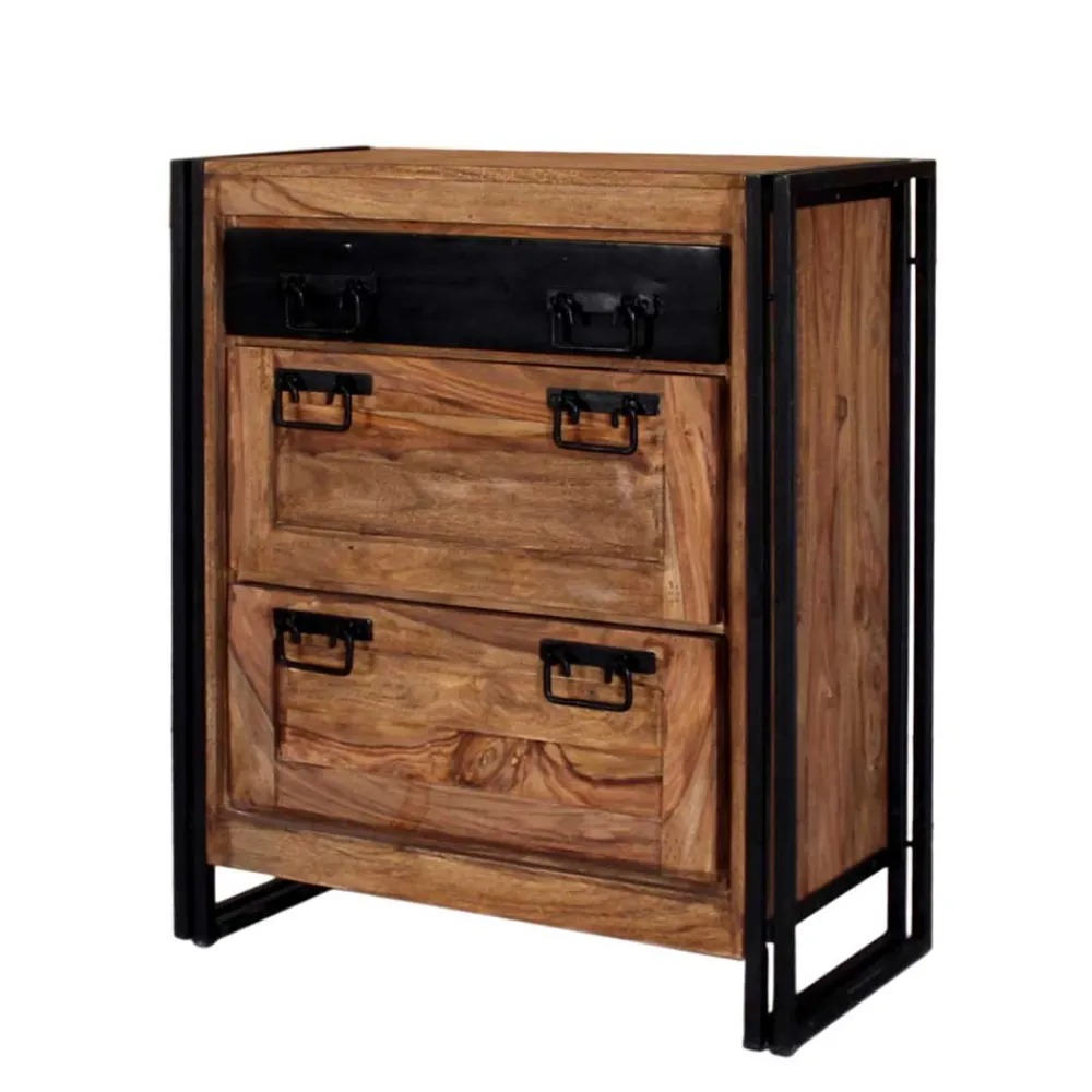 - Charaktervolles Garderoben-Set in Akaziefarben und Schwarz