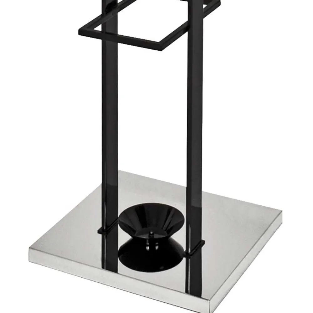 - Aus Stahlrohr gefertigt, eckige Fußplatte verchromt