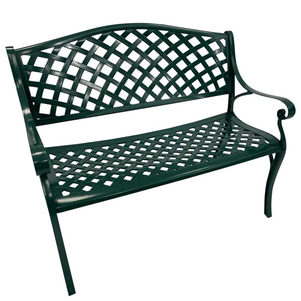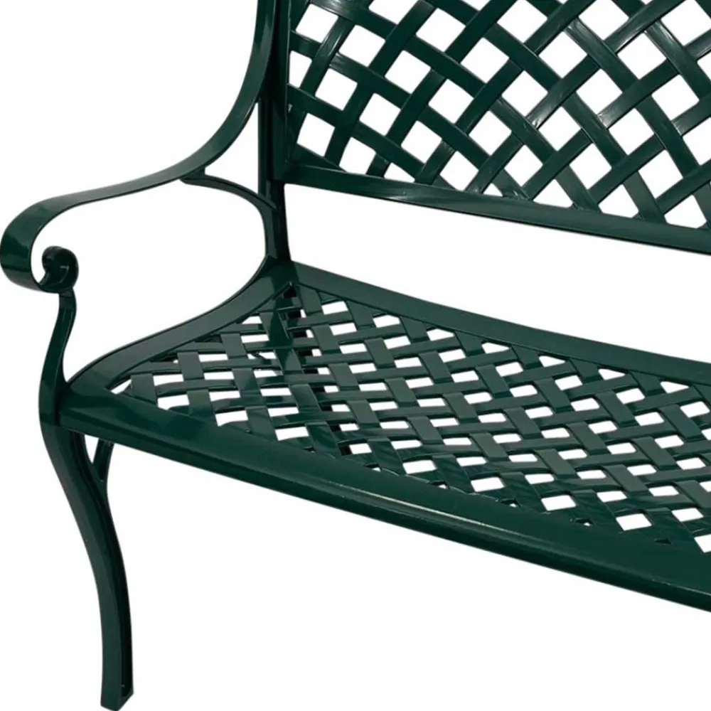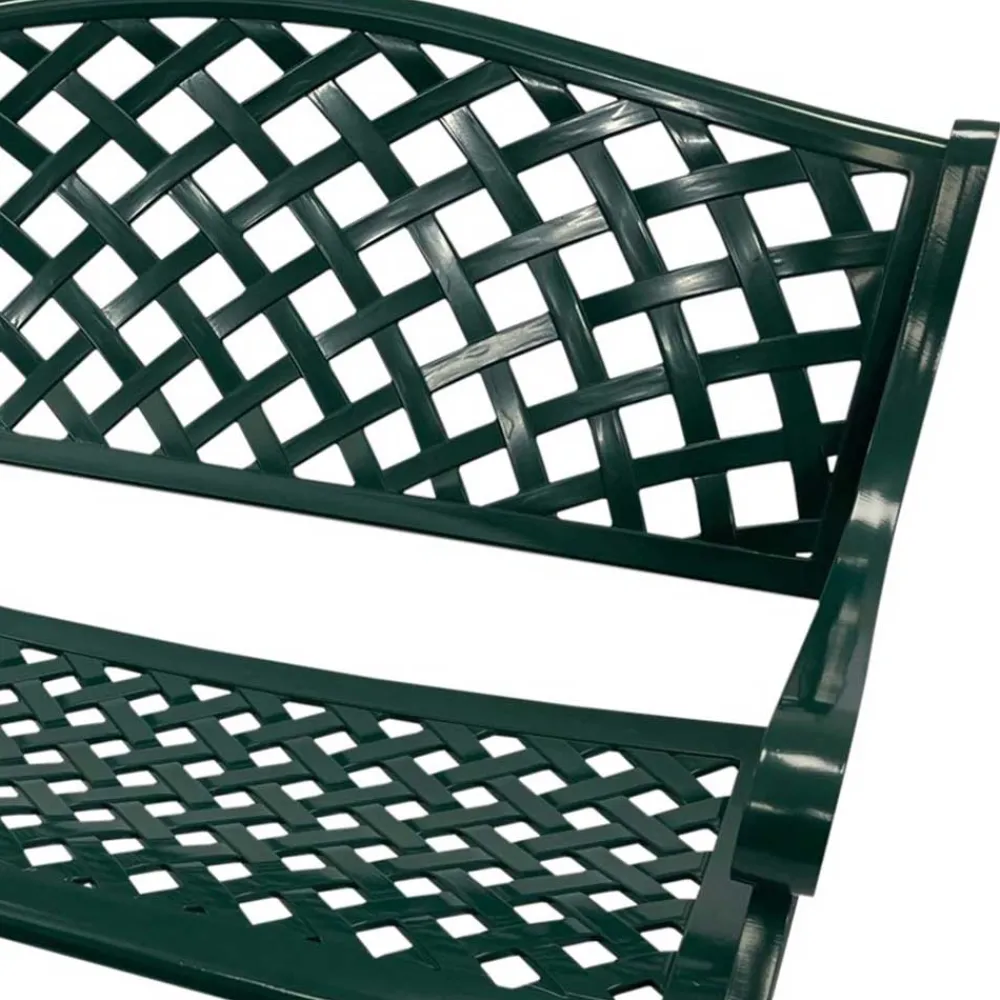 - Rückenlehne und Sitzfläche mit dekorativen Verstrebungen gestaltet, keine Staunässe