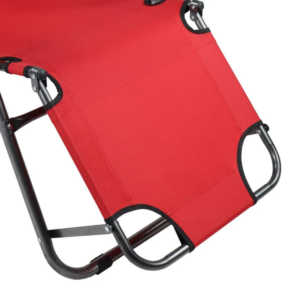 - Dieser moderne Liegestuhl besticht durch seine Farbkombination aus Rot und Schwarz