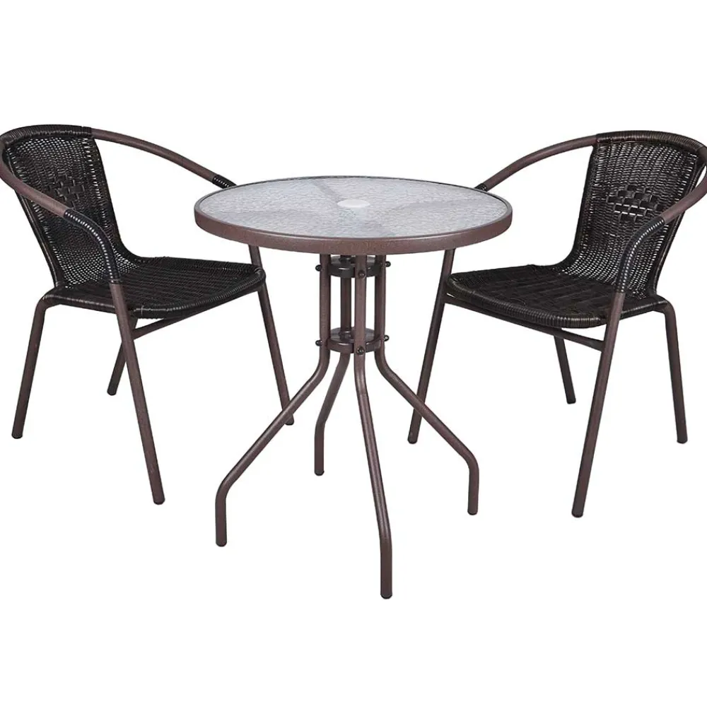 - Das braune Bistrotisch-Set passt perfekt in Ihren Landhausgarten