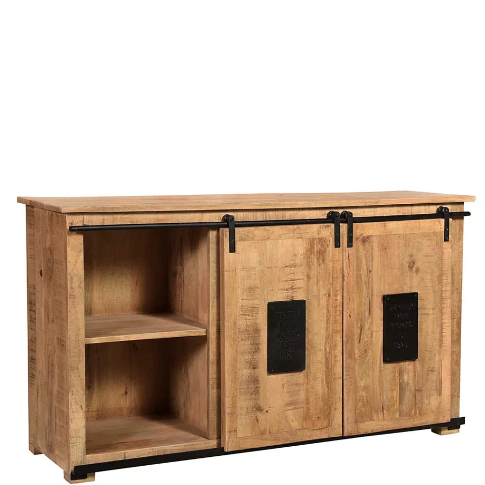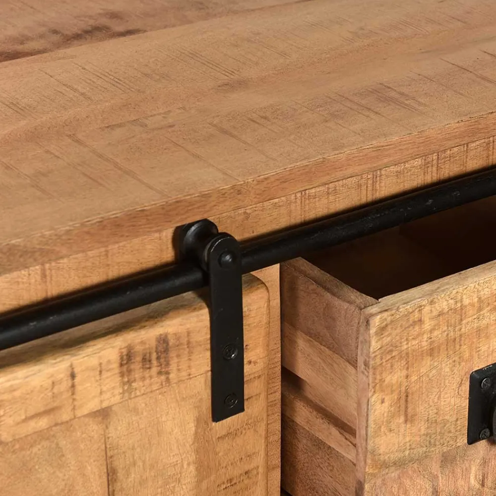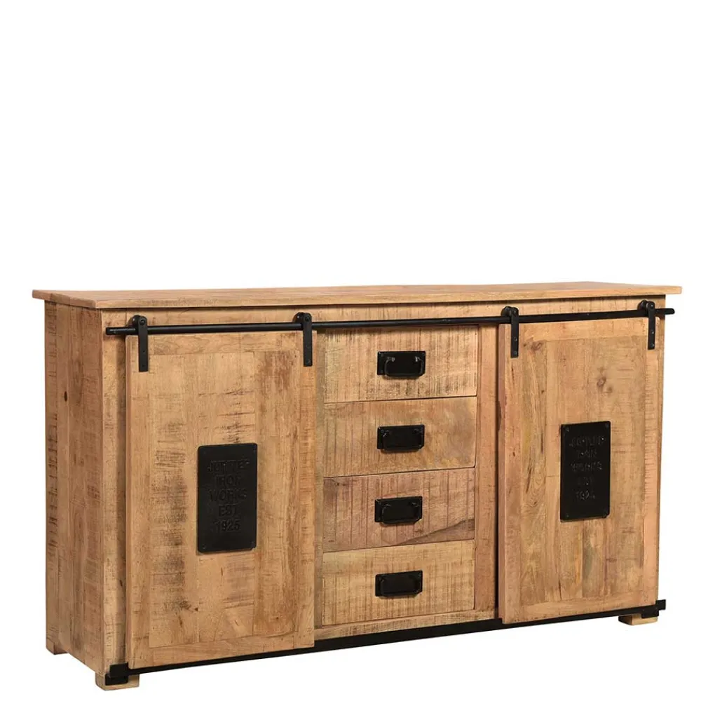 - Beeindruckendes Sideboard in Mangoholz Naturfarben und Antikschwarz