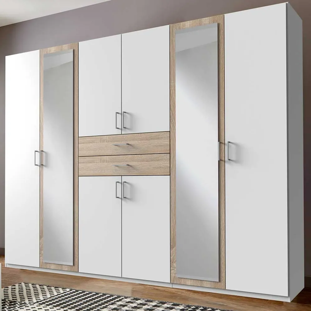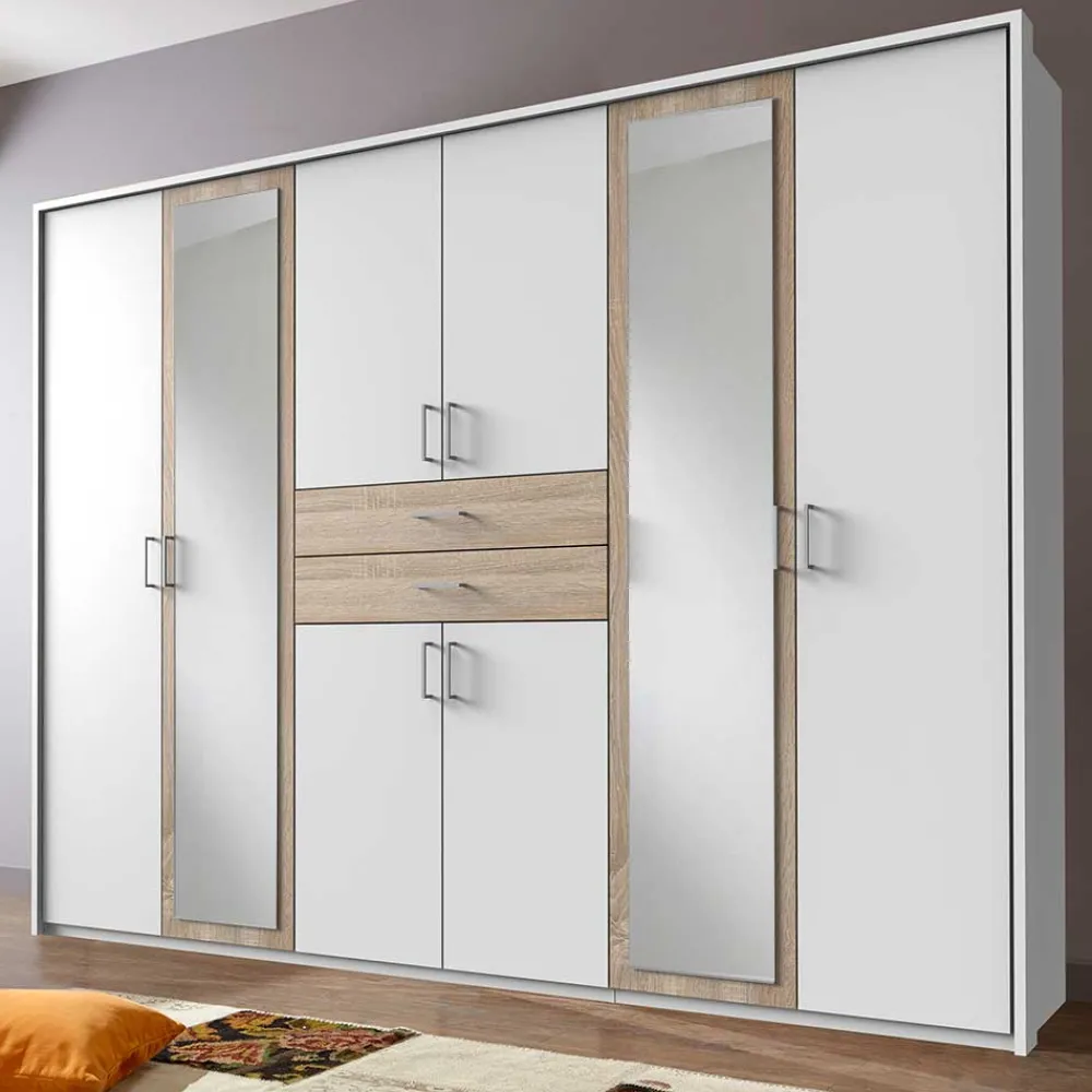 - Geräumiger Kleiderschrank in Weiß und Eiche Sägerau