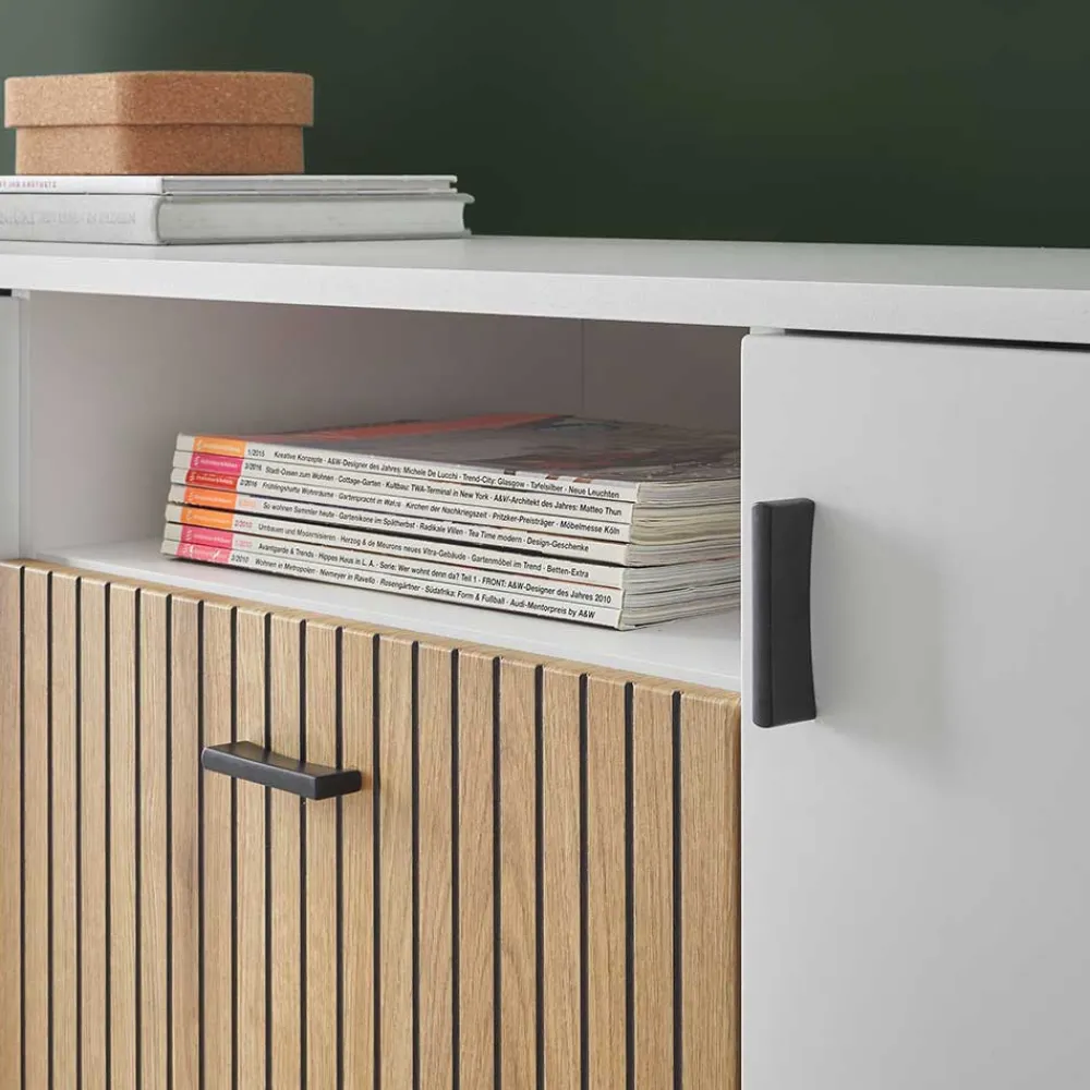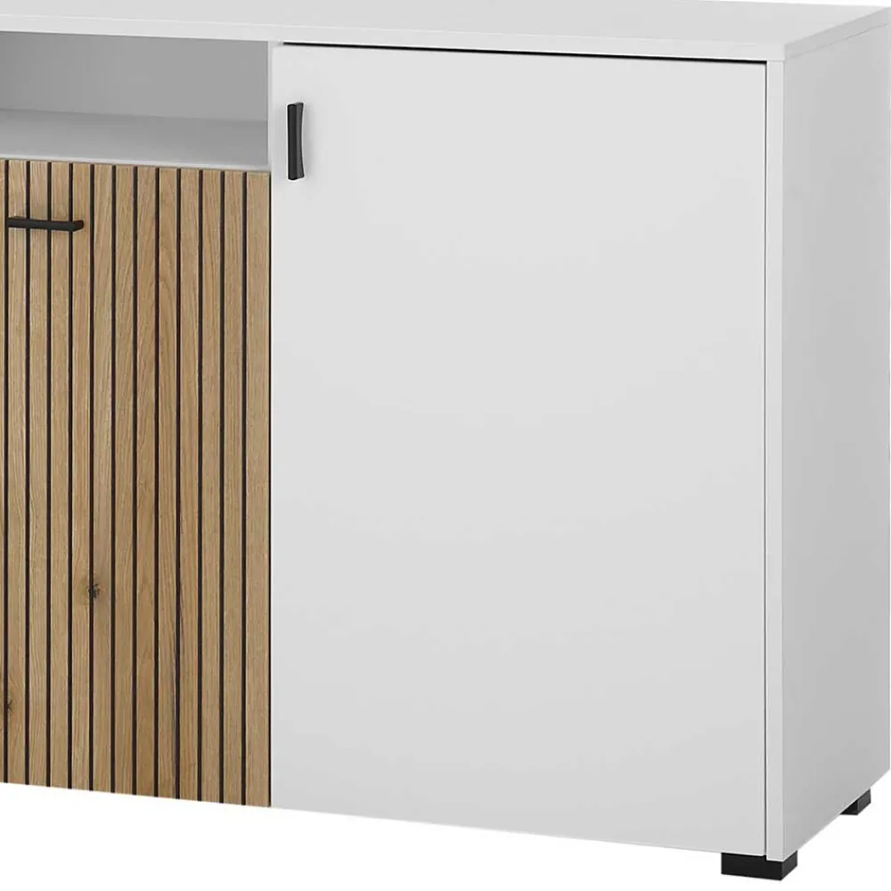 - Topaktuelles Sideboard in matt Weiß und Wildeichefarben