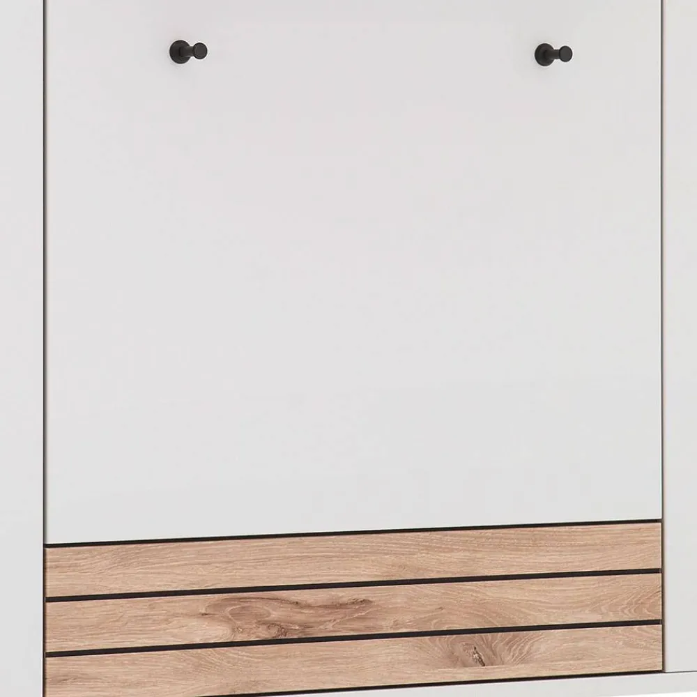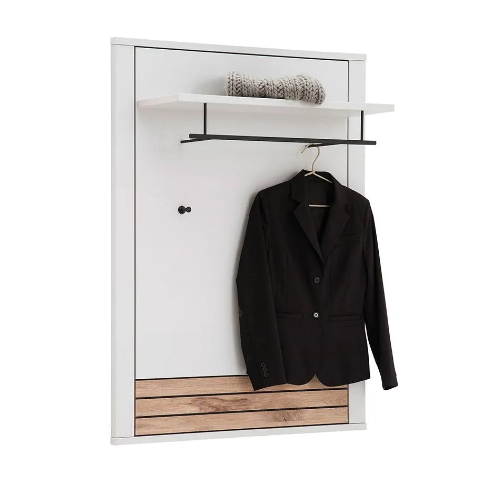 - Trendstarkes Garderobenpaneel in Lichtgrau und Wildeichefarben