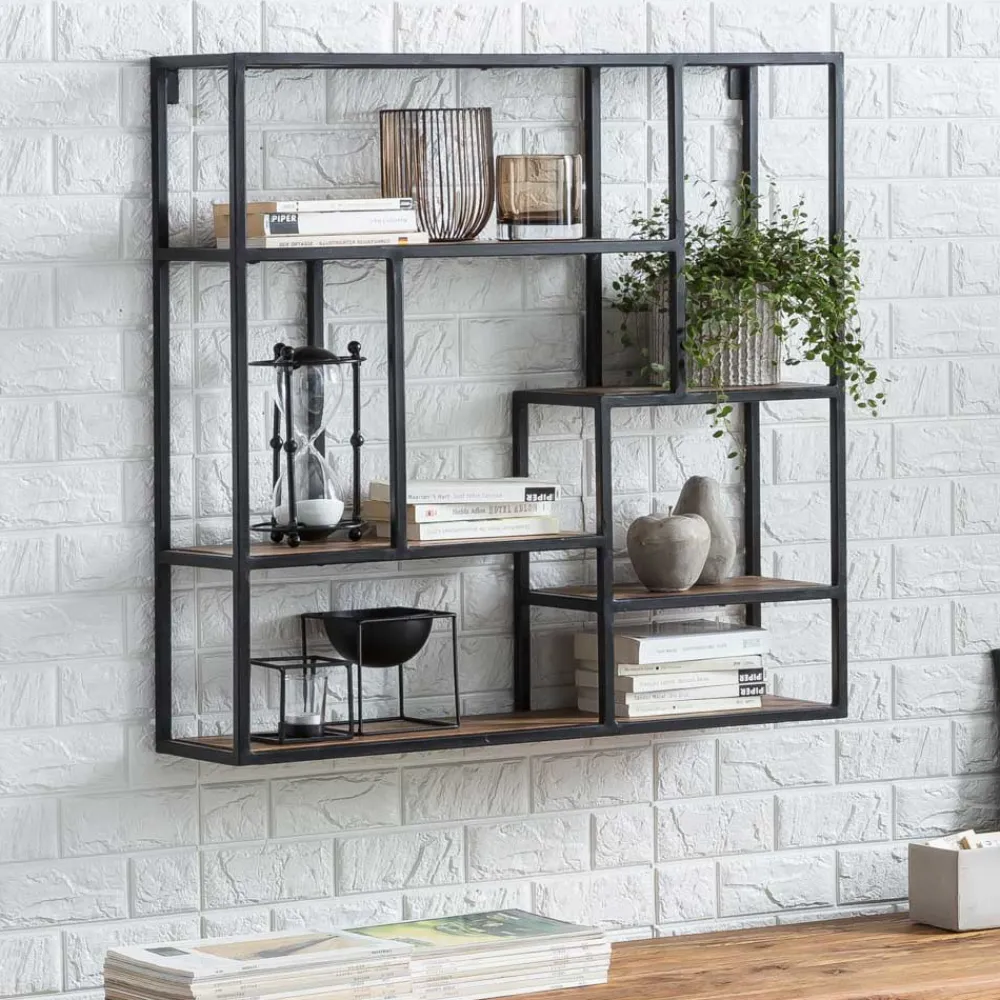 - Kompaktes Hängeregal in Schwarz und Holz Naturfarben