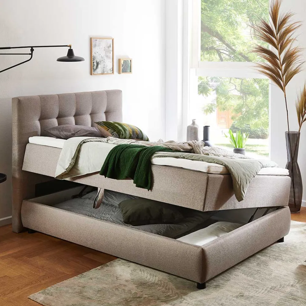 - Hochwertiges Box-Stauraumbett in Hellbraun