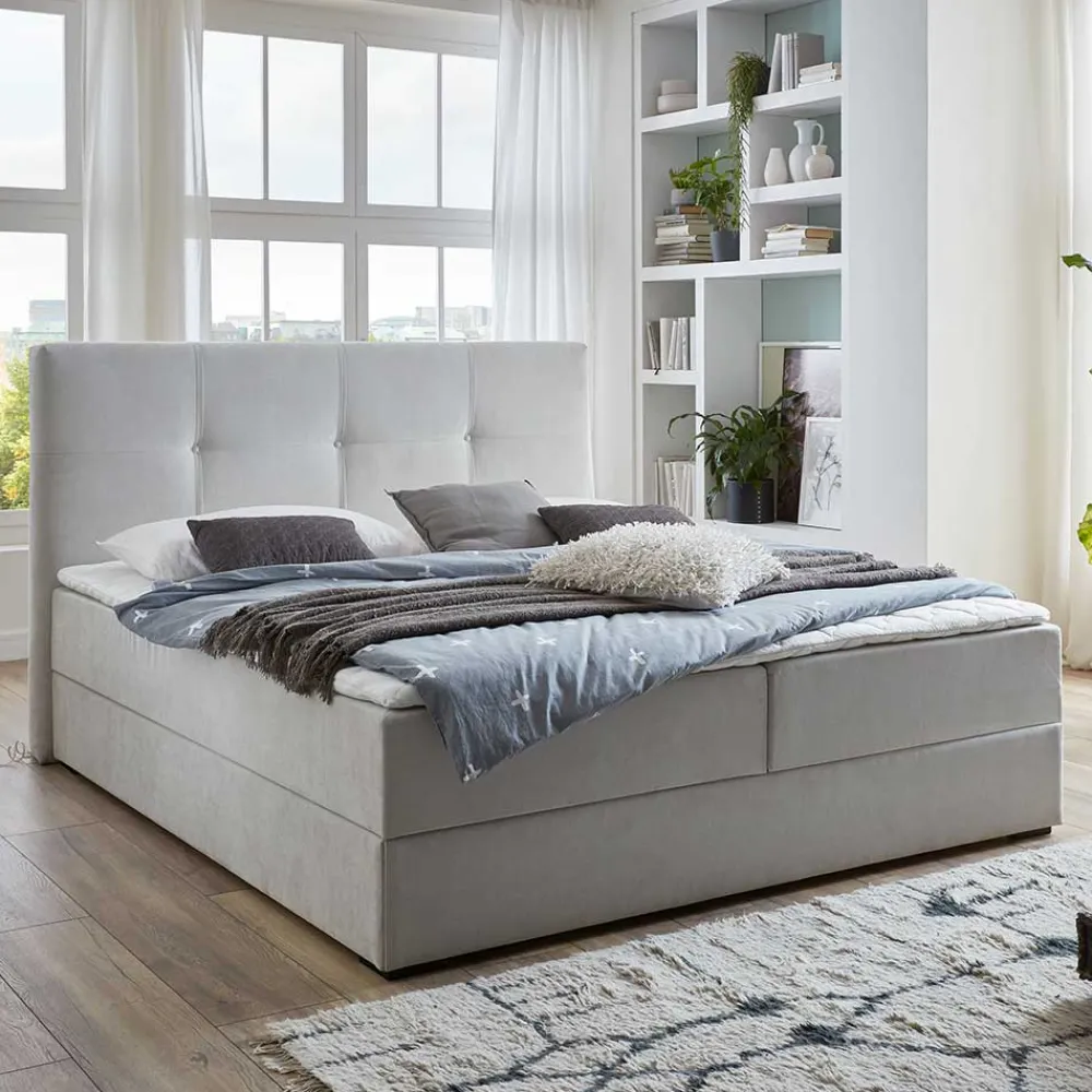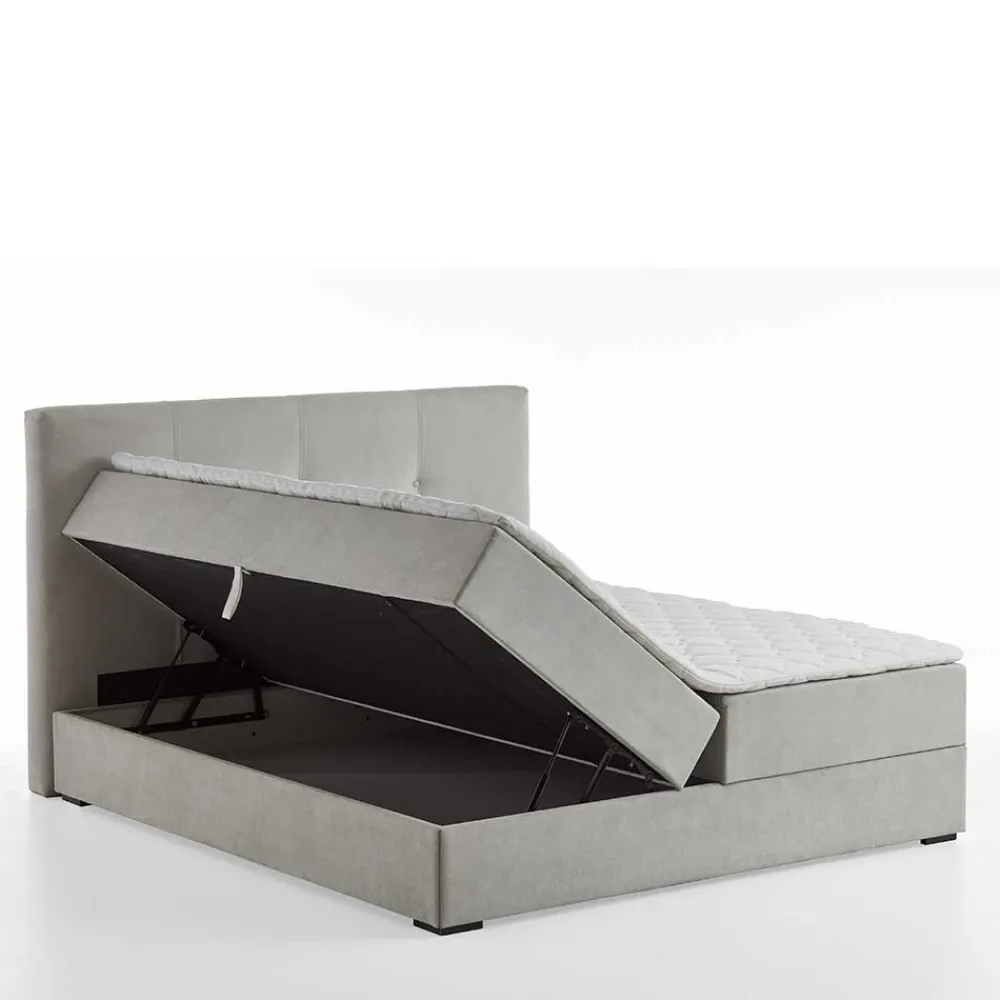 - Repräsentatives Boxbett in Hellgrau