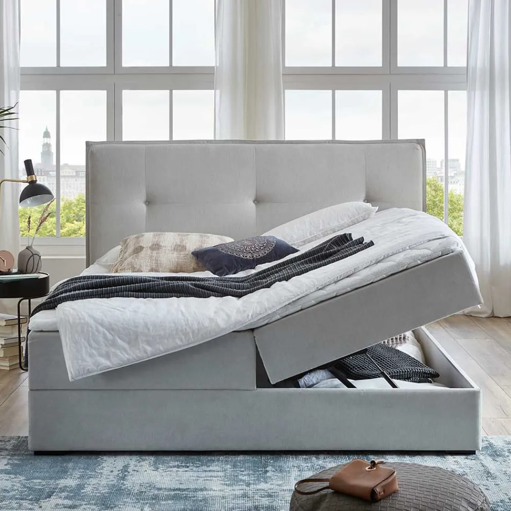 Hellgraues Boxbett Valpara Funktionsbetten|Schubkastenbetten
