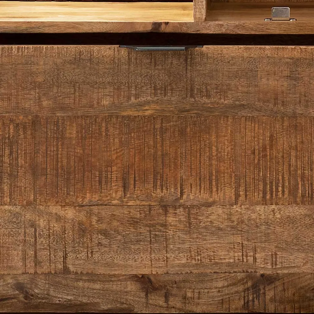 - Raffiniertes Highboard in Mangoholz Naturfarben und Anthrazit