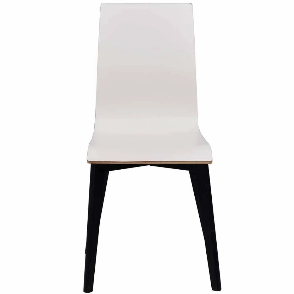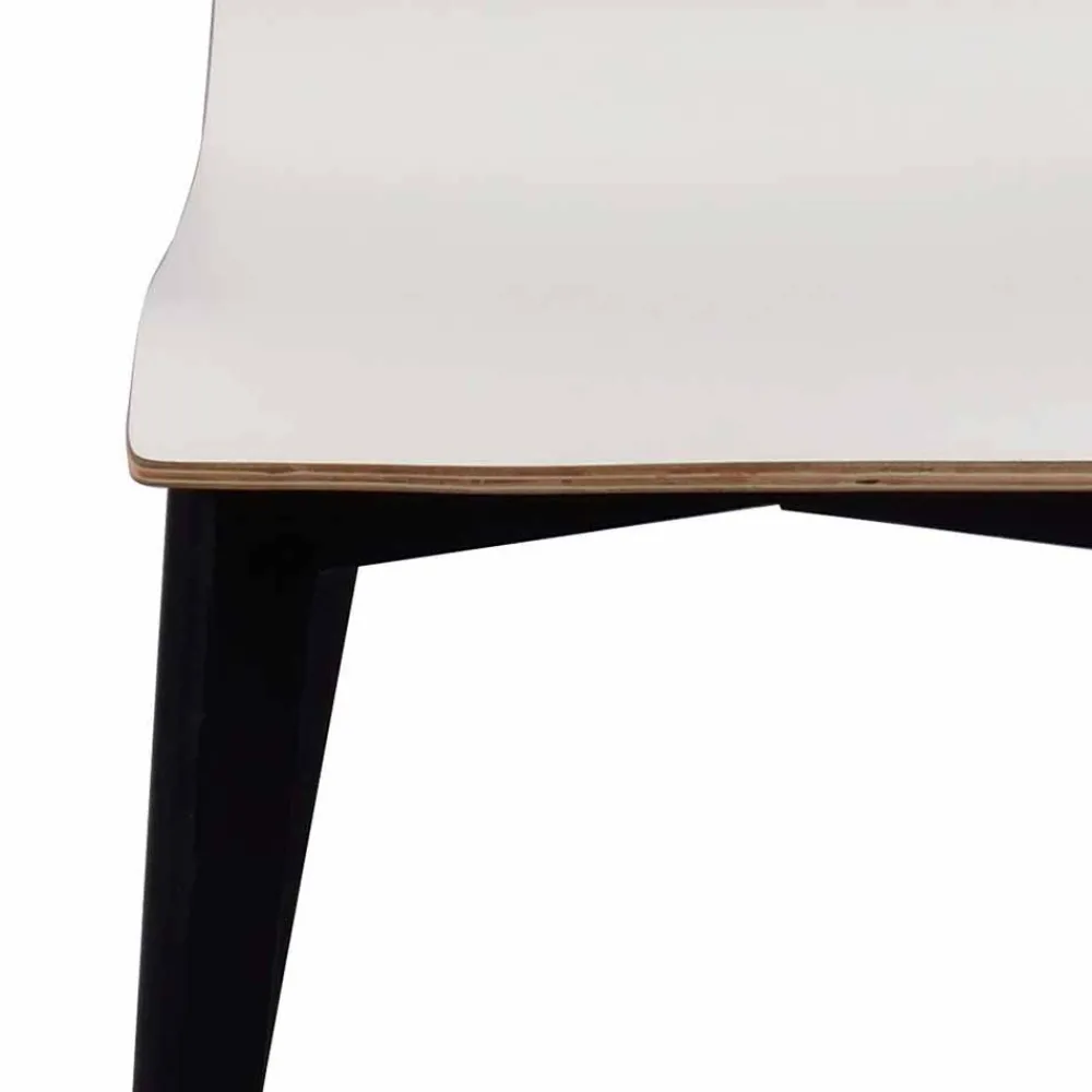 - Sitz- und Rückenoberfläche mit strapazierfähigem Hochdrucklaminat in Weiß, seitlich farblich abgesetzt, Gestell aus Eiche Massivholz, Schwarz gebeizt und lackiert