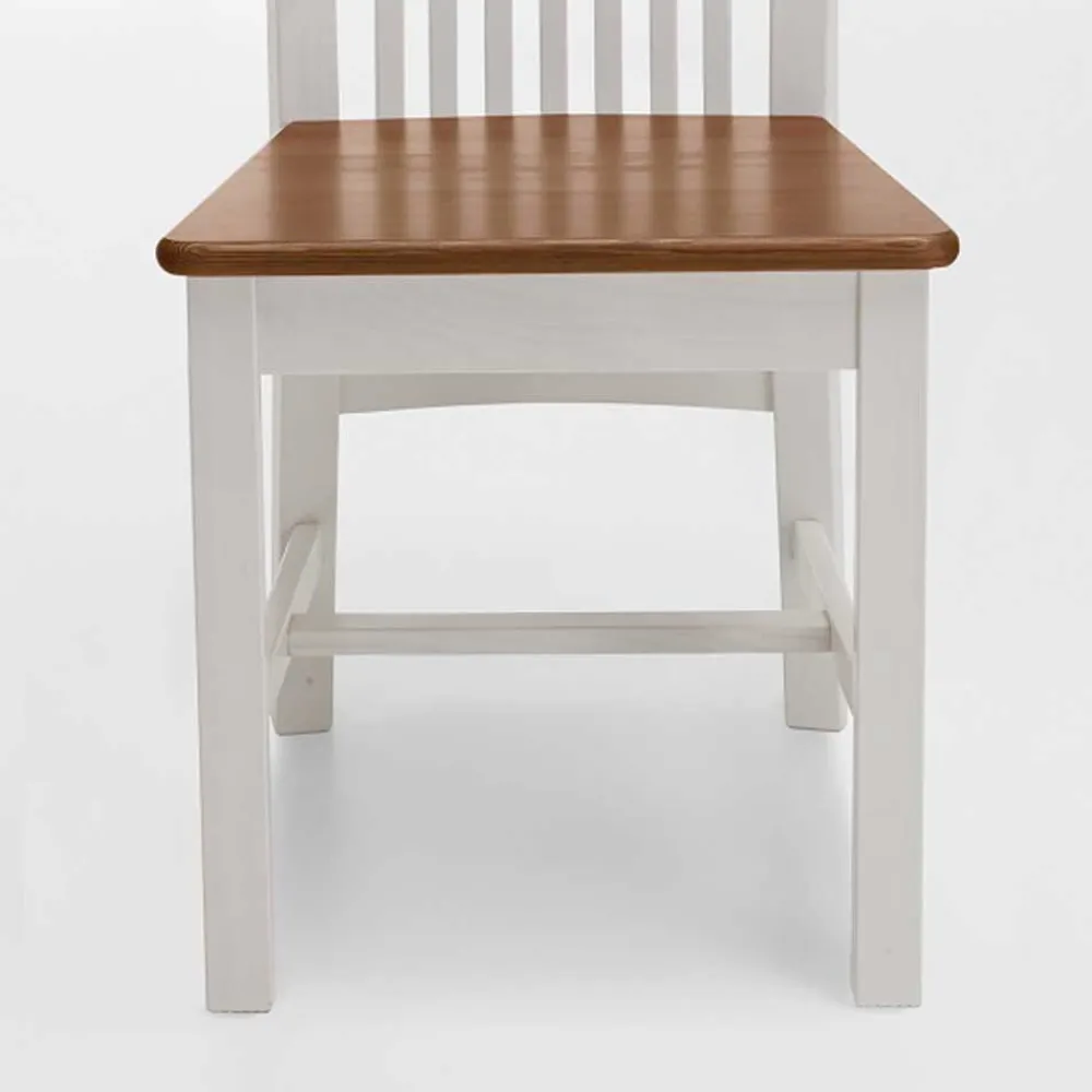 - Die Sitzfläche ist bernsteinfarben gebeizt/lackiert, der restliche Stuhl in Weiß lackiert