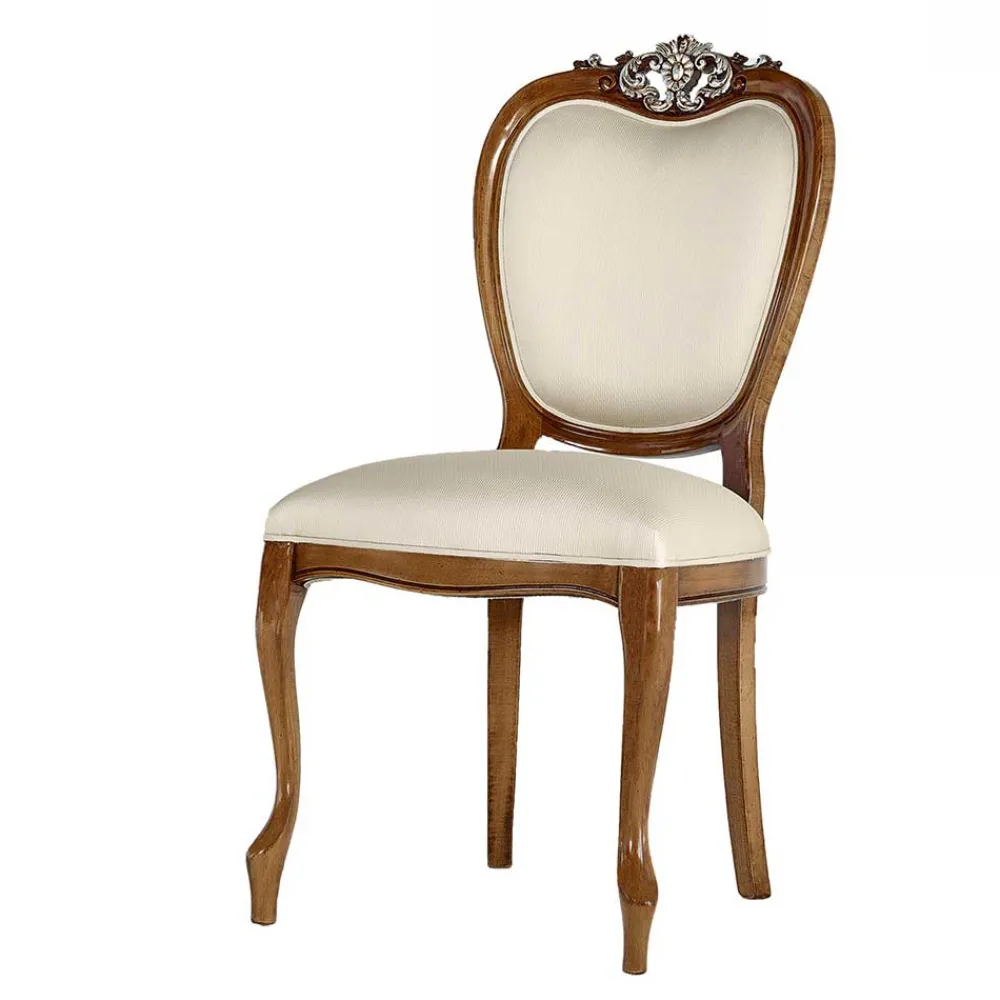 - Rückenlehne in Medaillonform mit silberfarbig lackierter Schnitzerei