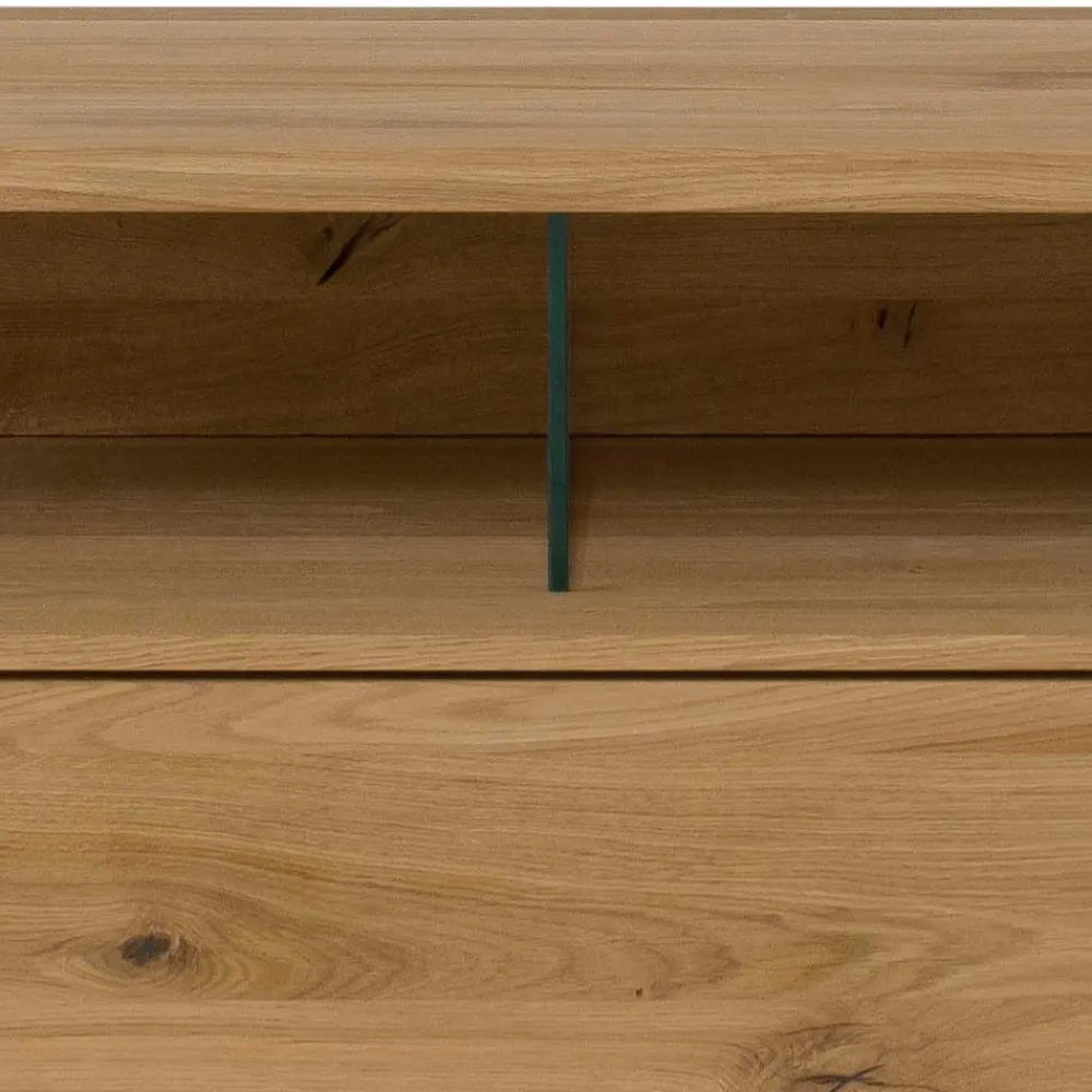 - Zwei offene Gerätefächer mit drei Glaswänden, Innenmaße: BxHxT: je ca. 80x15x38 cm