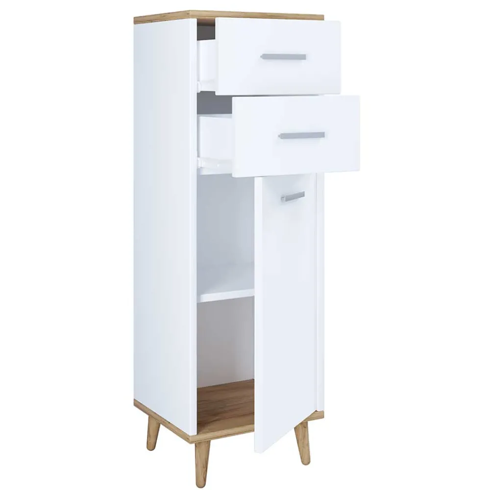 - Schlanke Kommode in Weiß und Wildeiche Honigfarben