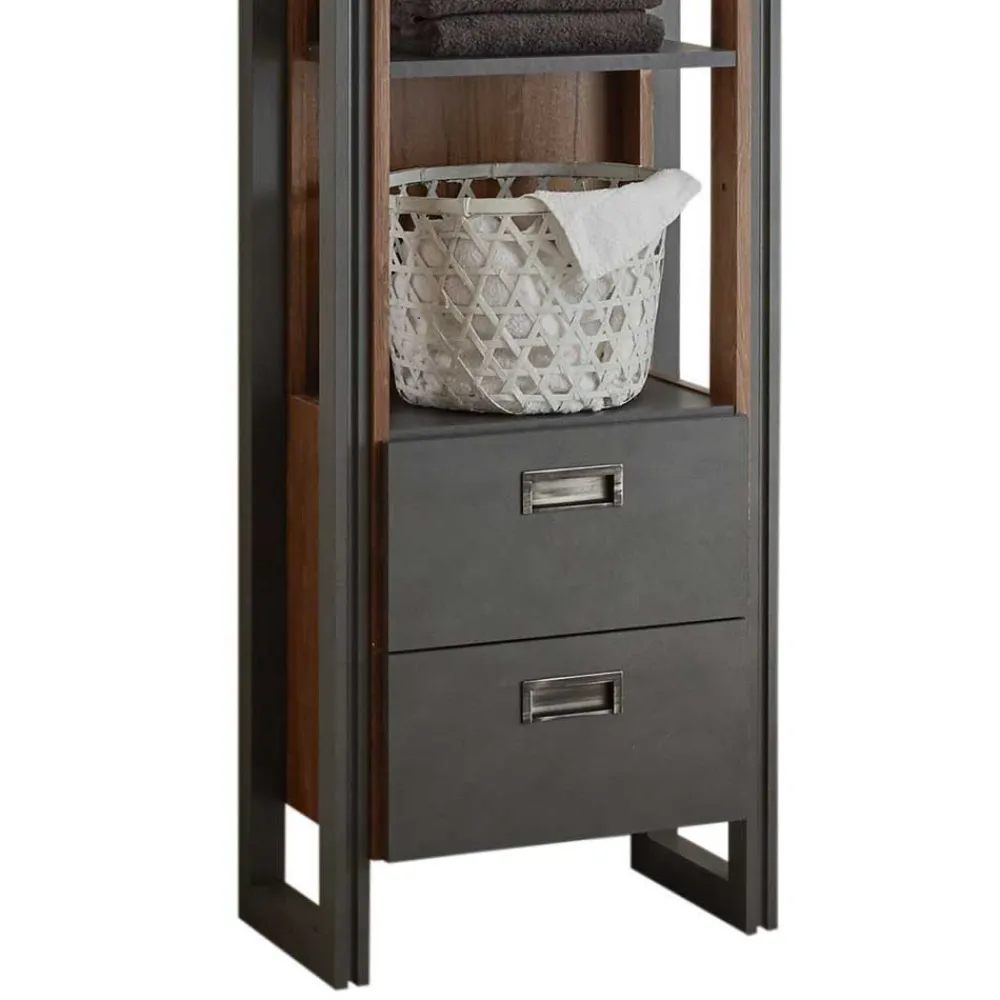 - Bestechendes Bad Regal in Eiche dunkel und Grau