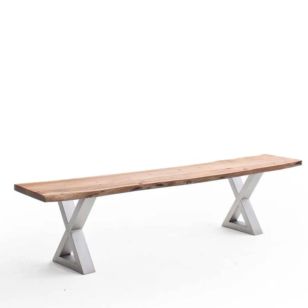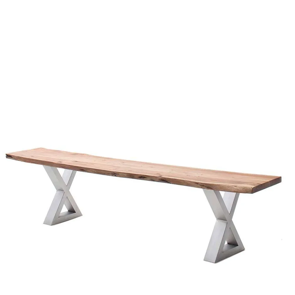 - Die Esstisch Bank in Akazie Natur- und Edelstahlfarben passt ideal zum Industry und Loft Stil