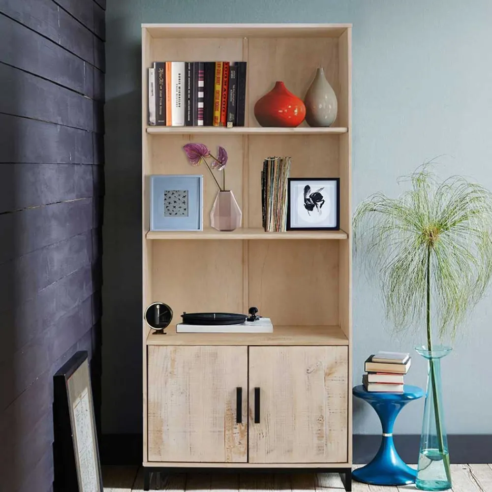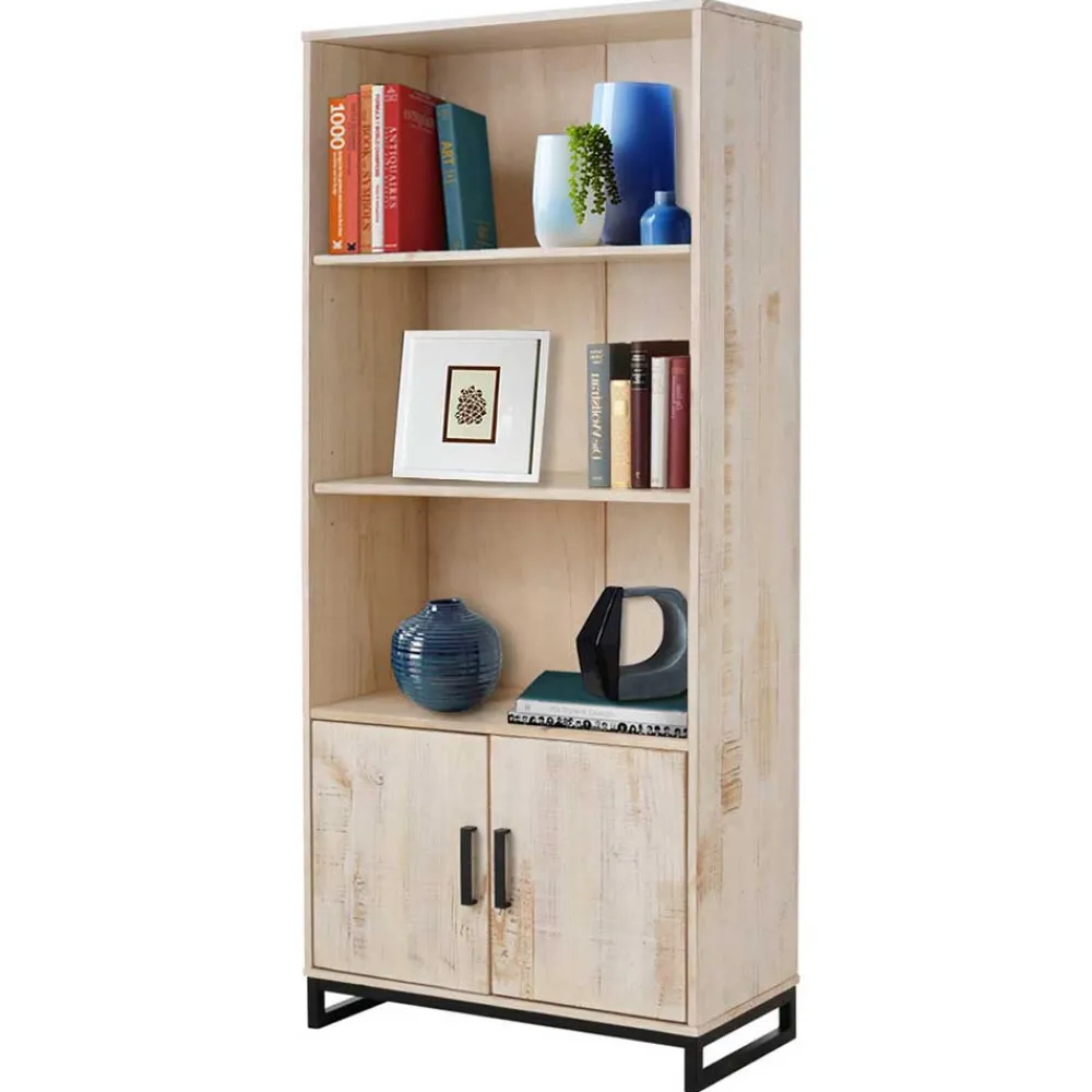 - Modisches Regal in Kiefer White Wash und Schwarz