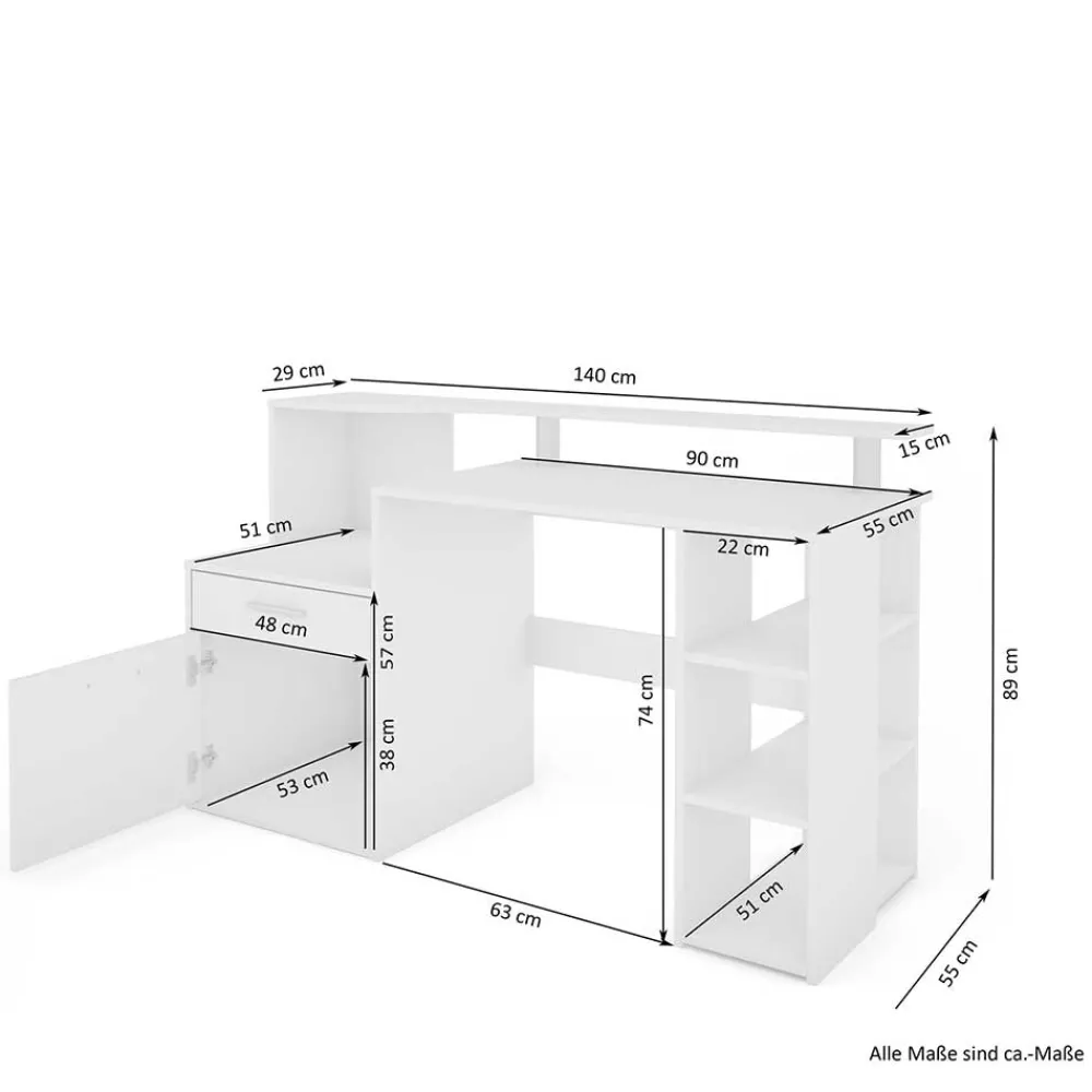 - Eine Schublade mit Metallauszug, darüber eine Ablage die auch für den Drucker genutzt werden kann