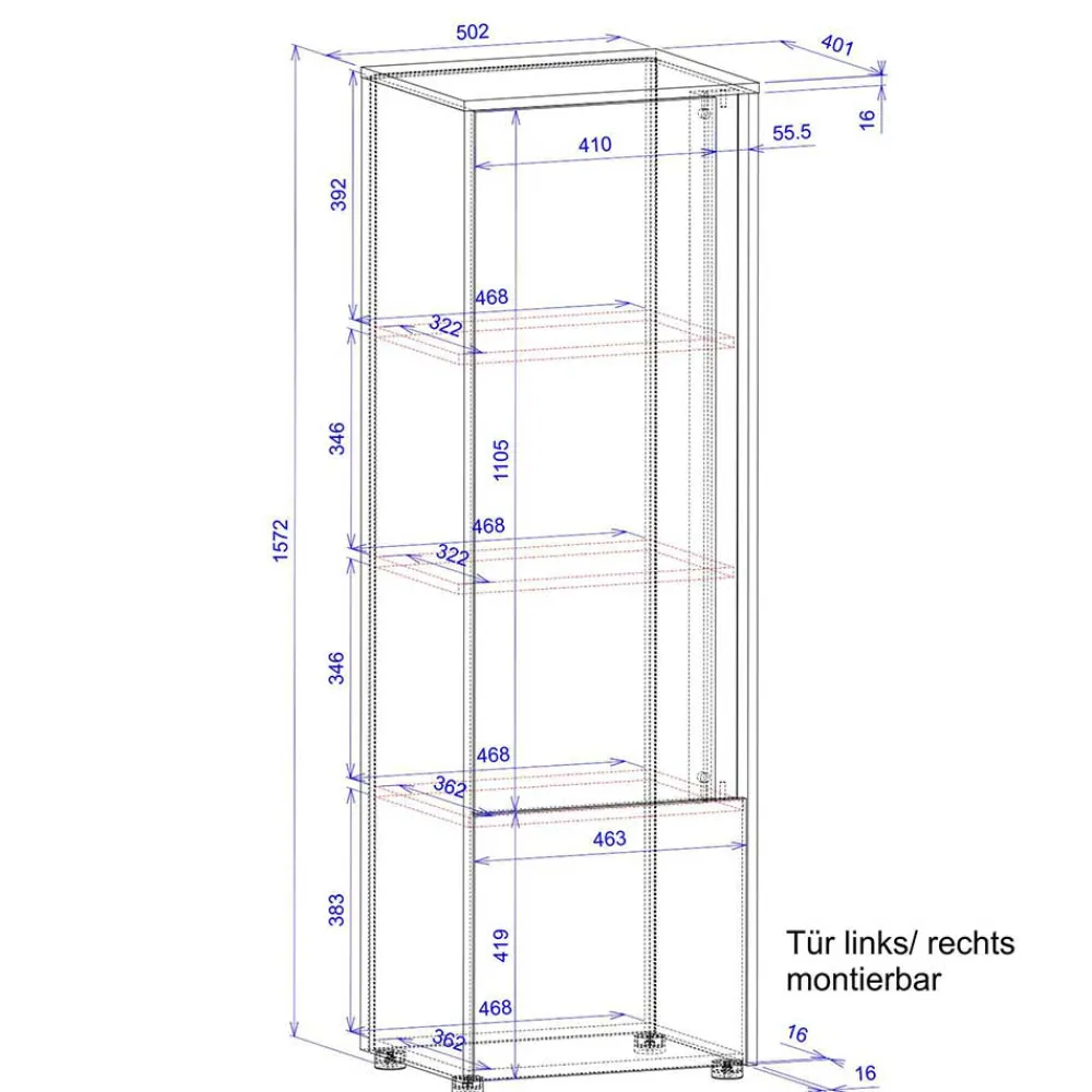 - Zwei Türen, innen drei Einlegeböden
