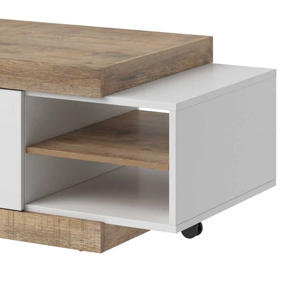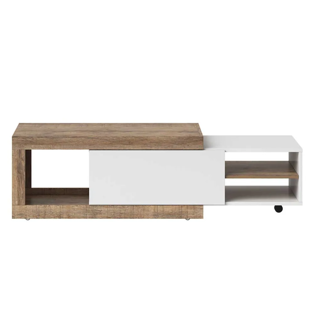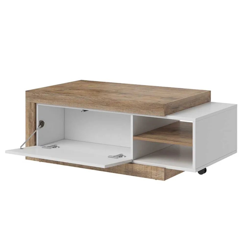 - Trendiger Couchtisch in Weiß und Holzoptik Eiche verwittert