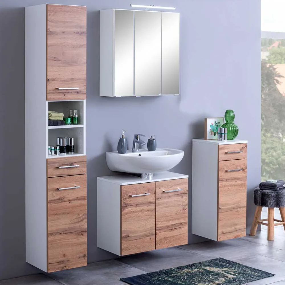 - Makellose Badezimmer Kombination in Weiß und Wildeichefarben