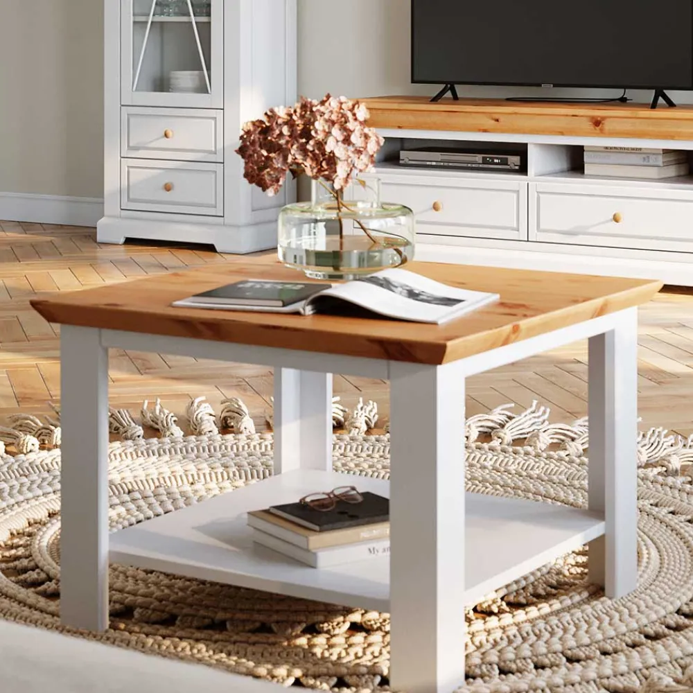 - Ansprechender Couchtisch in Weiß und Kieferfarben