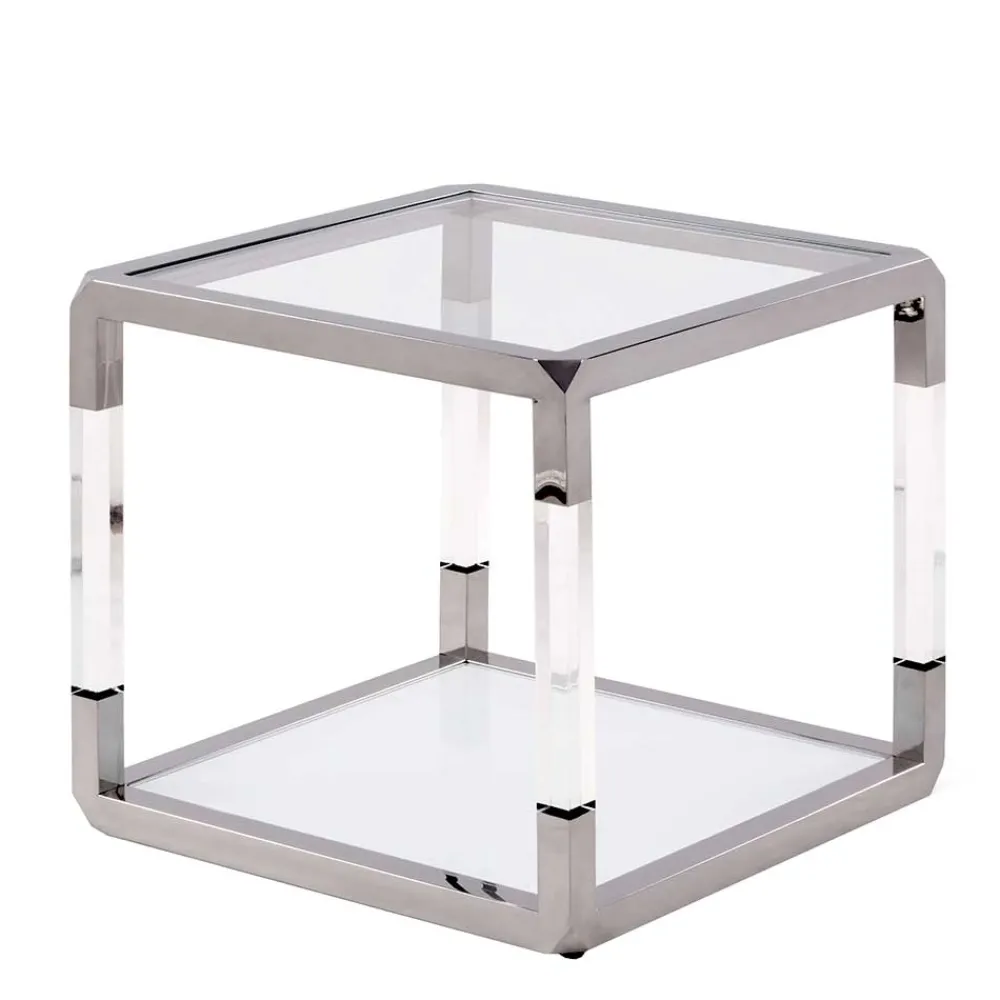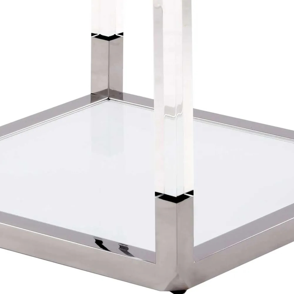 - Stylischer Beistelltisch in Transparent, Weiß und Silberfarben