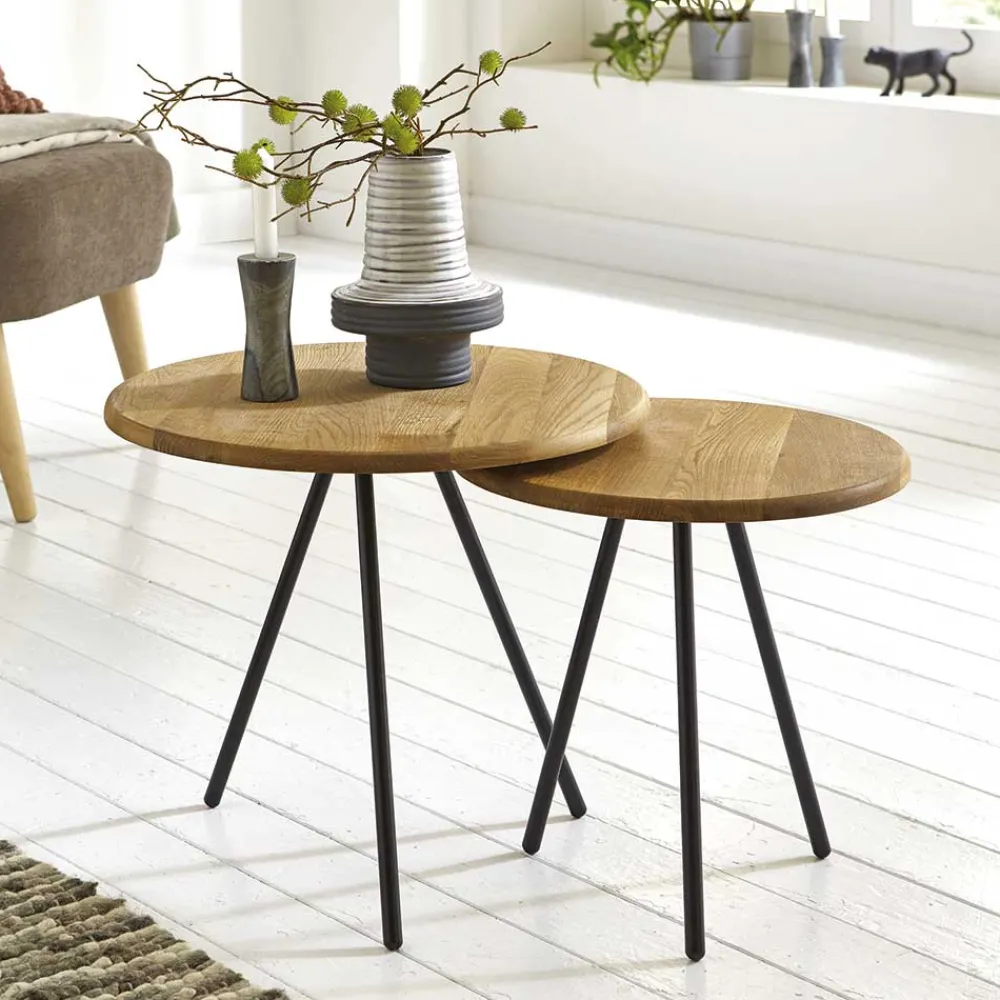 - Dezente Beistelltische in Eichefarben und Schwarz
