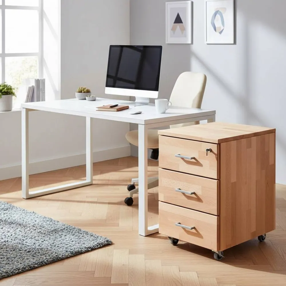 - Vier Kunststoffrollen, zwei mit Feststellbremse ausgestattet