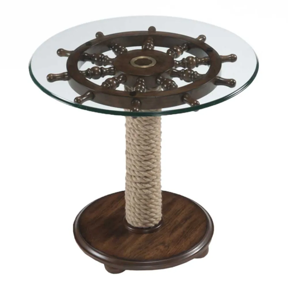 - Maritimer Beistelltisch in Nussbaumfarben und Beige