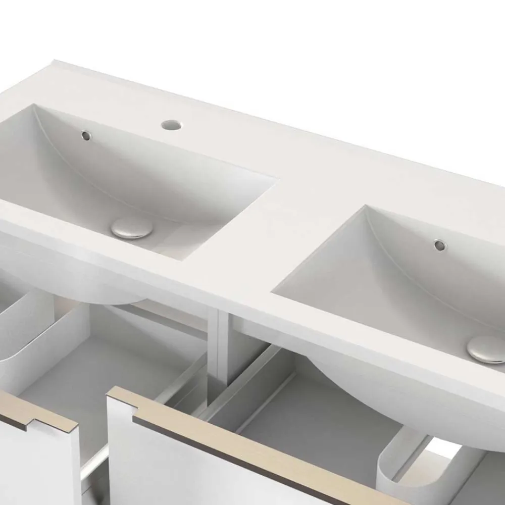 - Inklusive hochwertigem Doppelwaschbecken