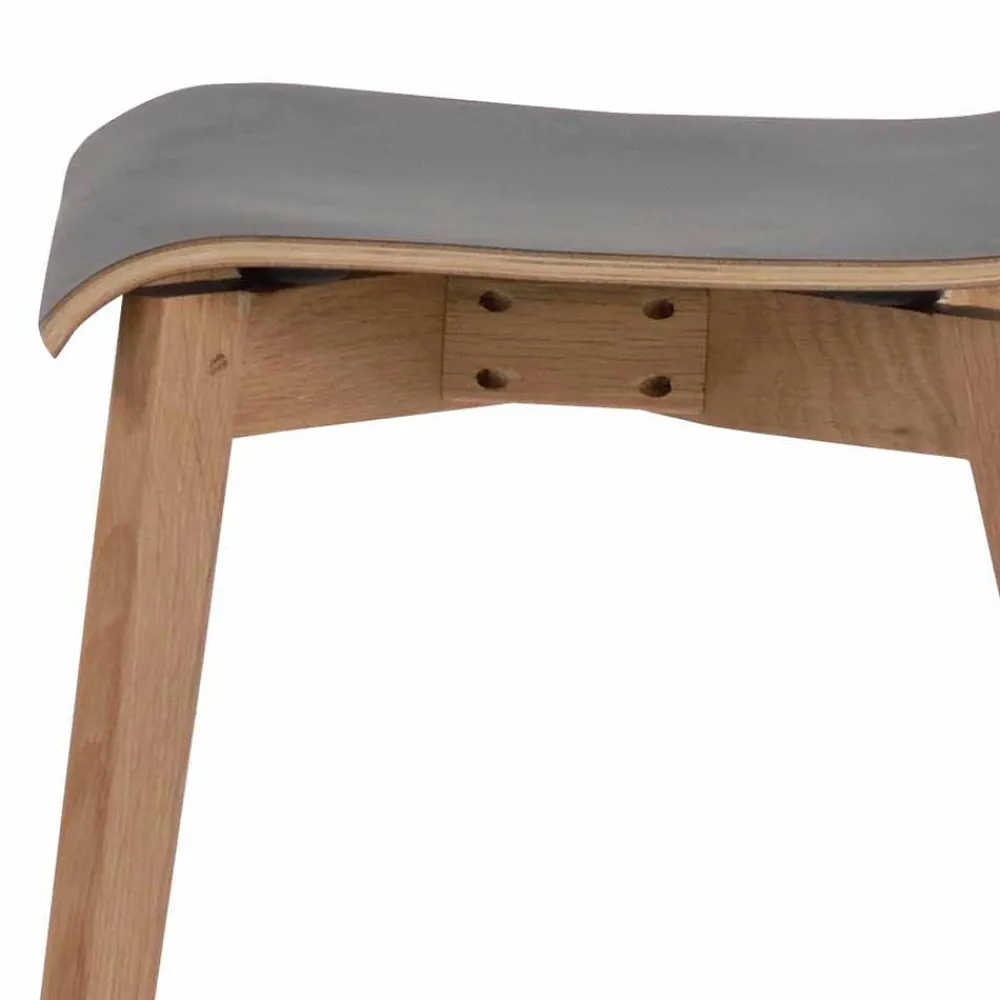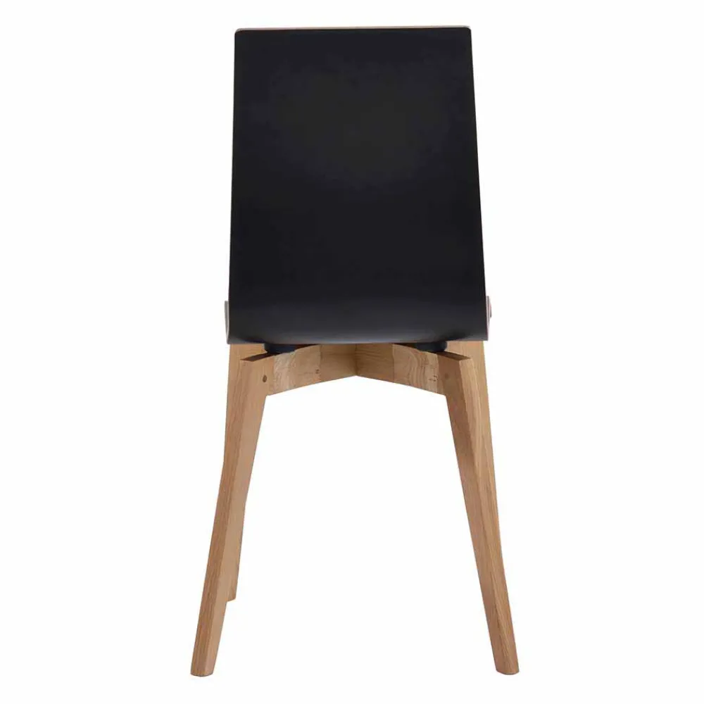 - Sitz- und Rückenoberfläche mit strapazierfähigem Hochdrucklaminat in Schwarz, seitlich farblich kontrastierend, Gestell aus Eiche Massivholz in klar lackiert