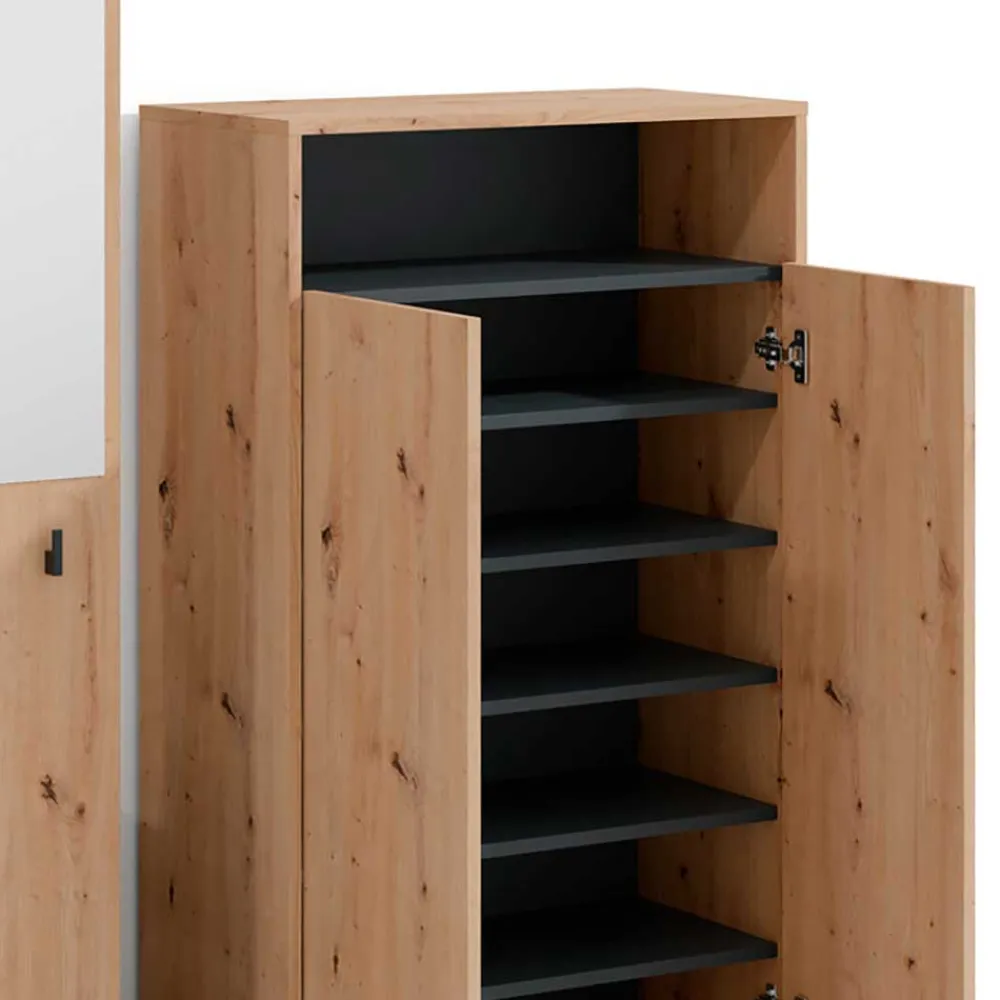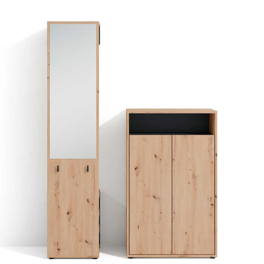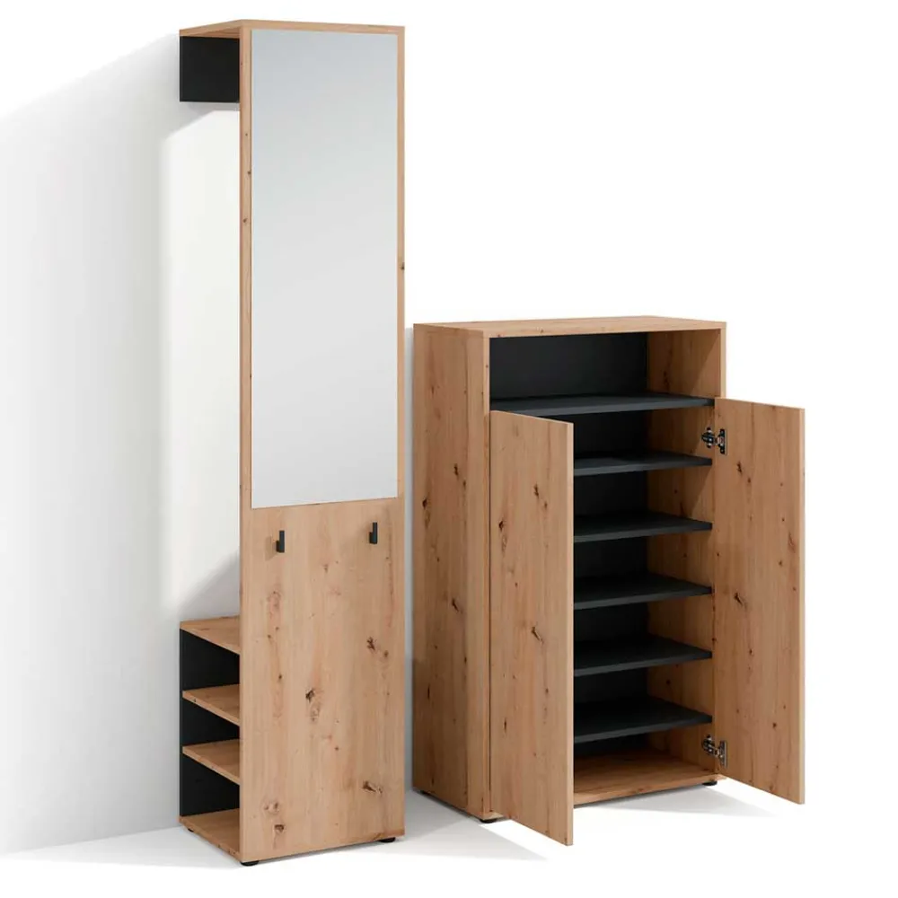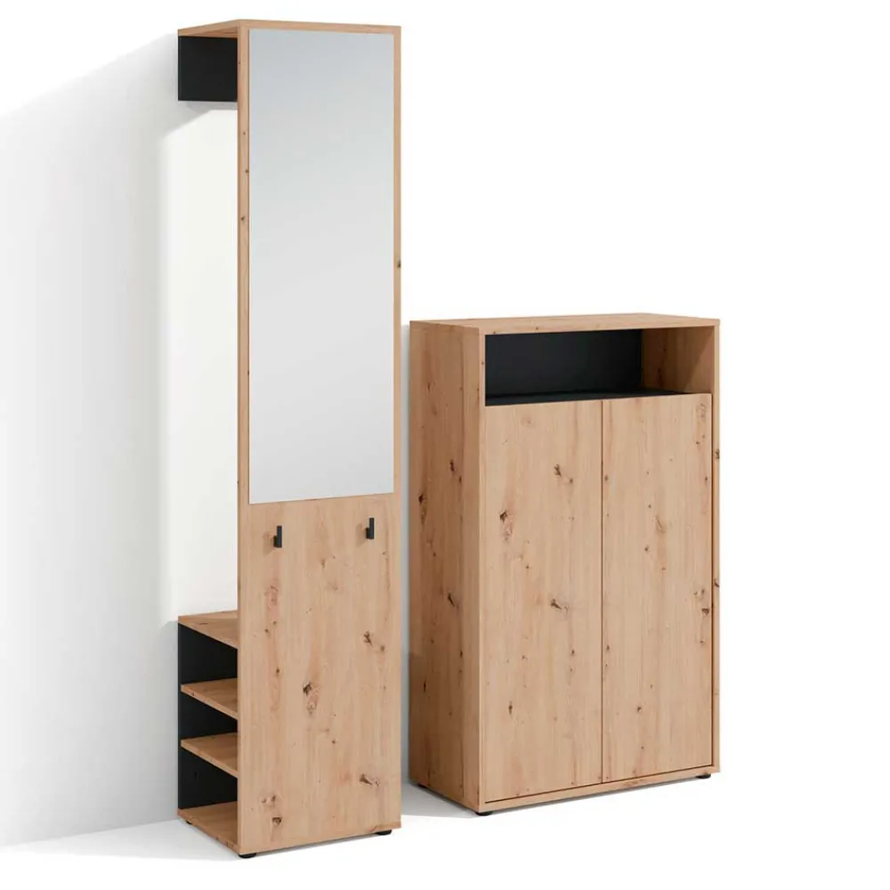 - Kompakte Garderobenmöbel in Wildeichefarben und Schwarz