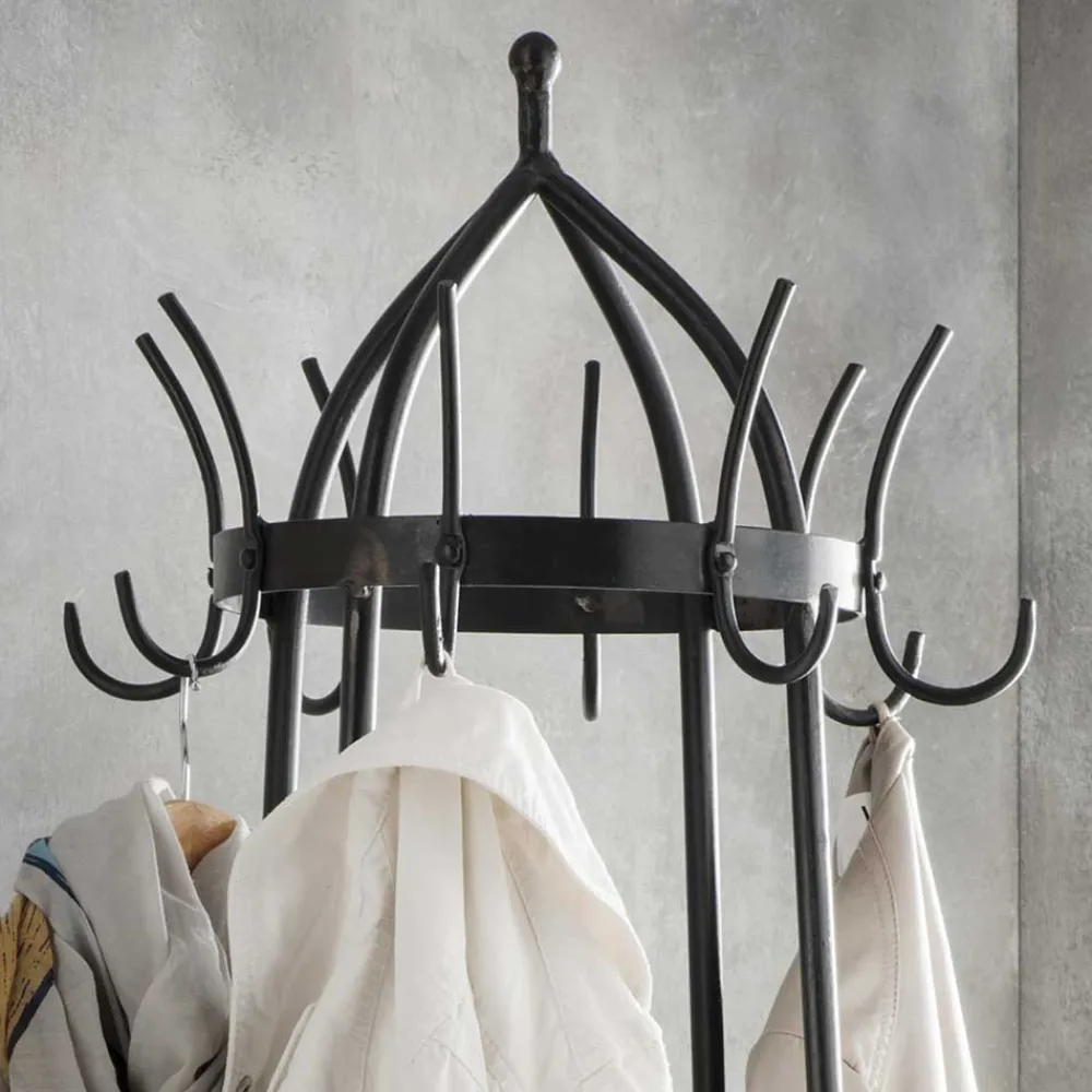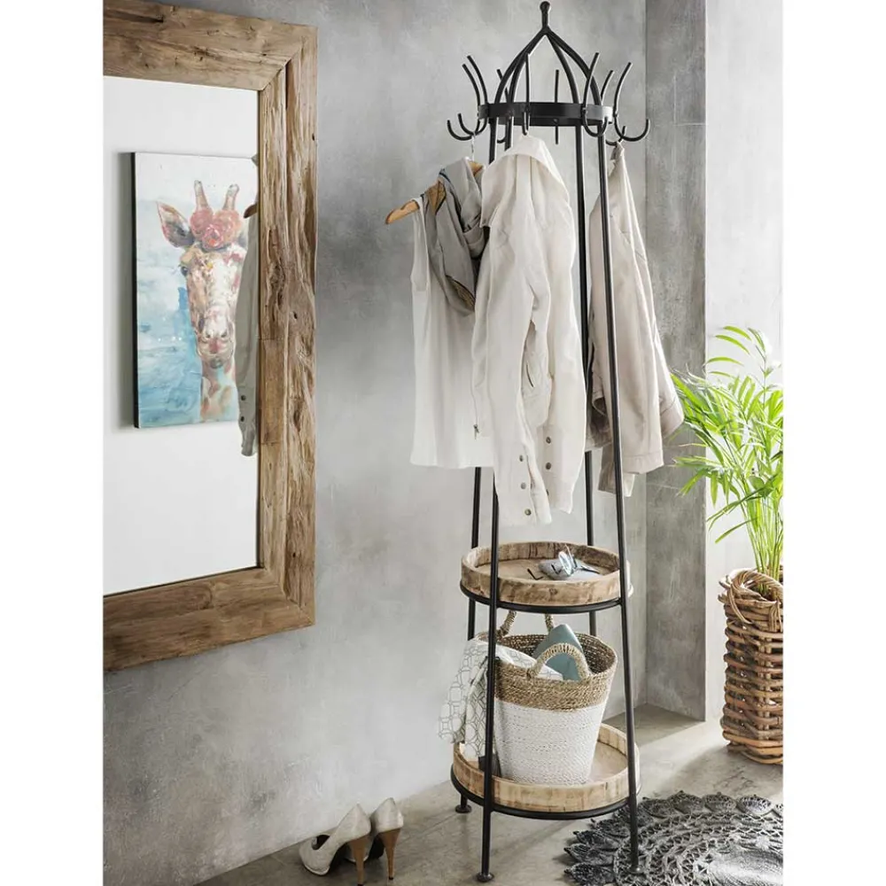 - Dekorativer Garderobenständer in Schwarz Vintage und Mangoholz Naturfarben