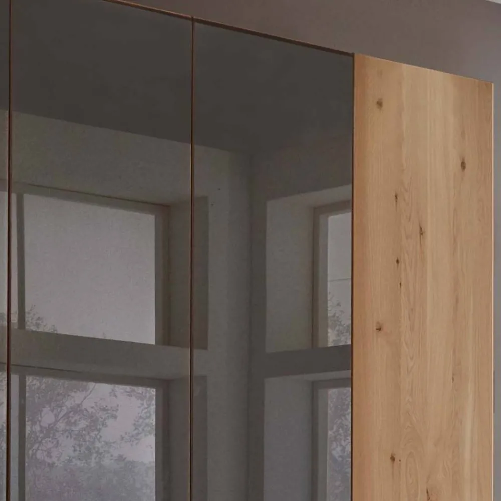 - Hervorragender Kleiderschrank in Dunkelbraun und Eiche Bianco teilmassiv mit Ästen