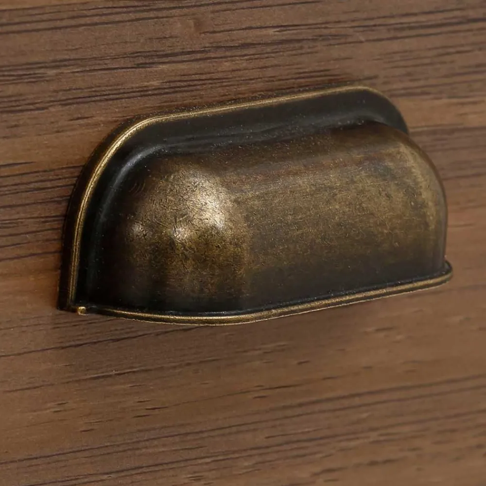 - Wertige Metall-Muschelgriffe und ein Knopfgriff in Altmessingfarben