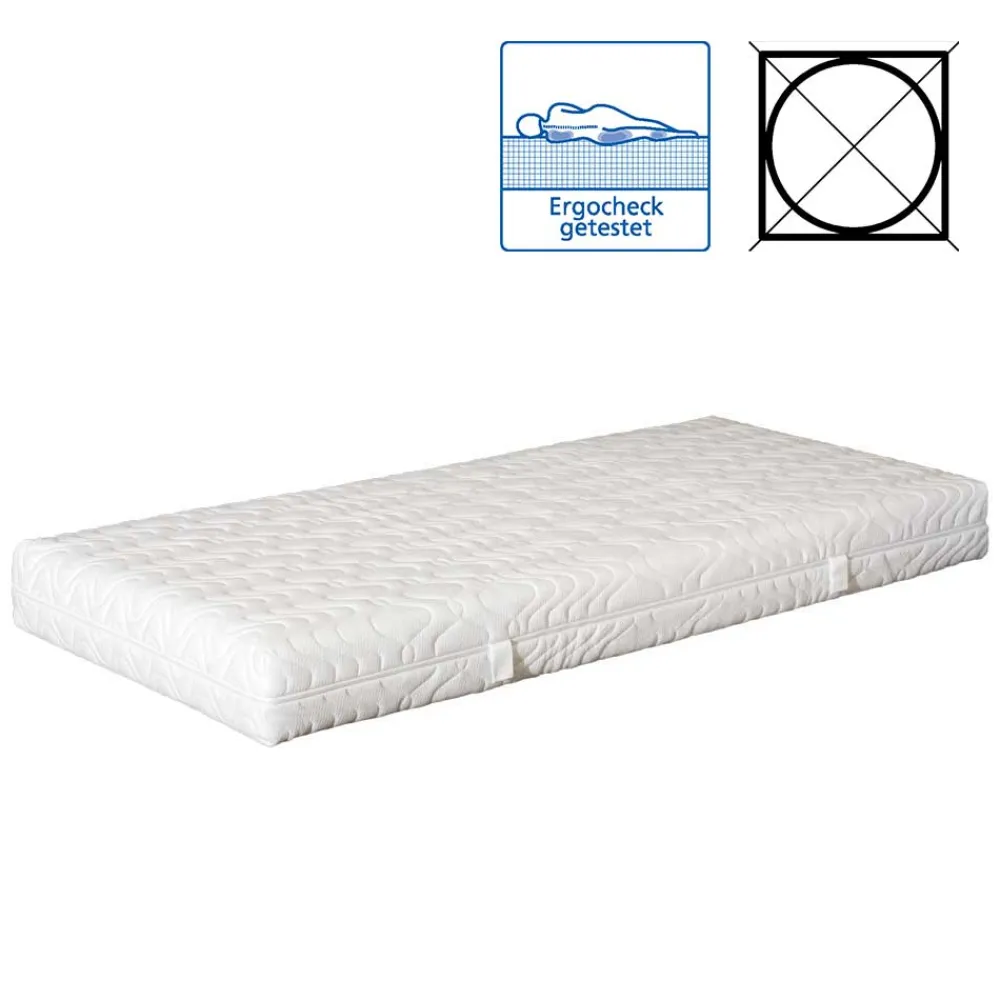 - 7-Zonen-Matratze mit Kaltschaumkern (RG 45 kg/m³, 14 cm stark) mit druckentlastender Viscoschaumauflage, RG 50 kg/m³, 4 cm stark
