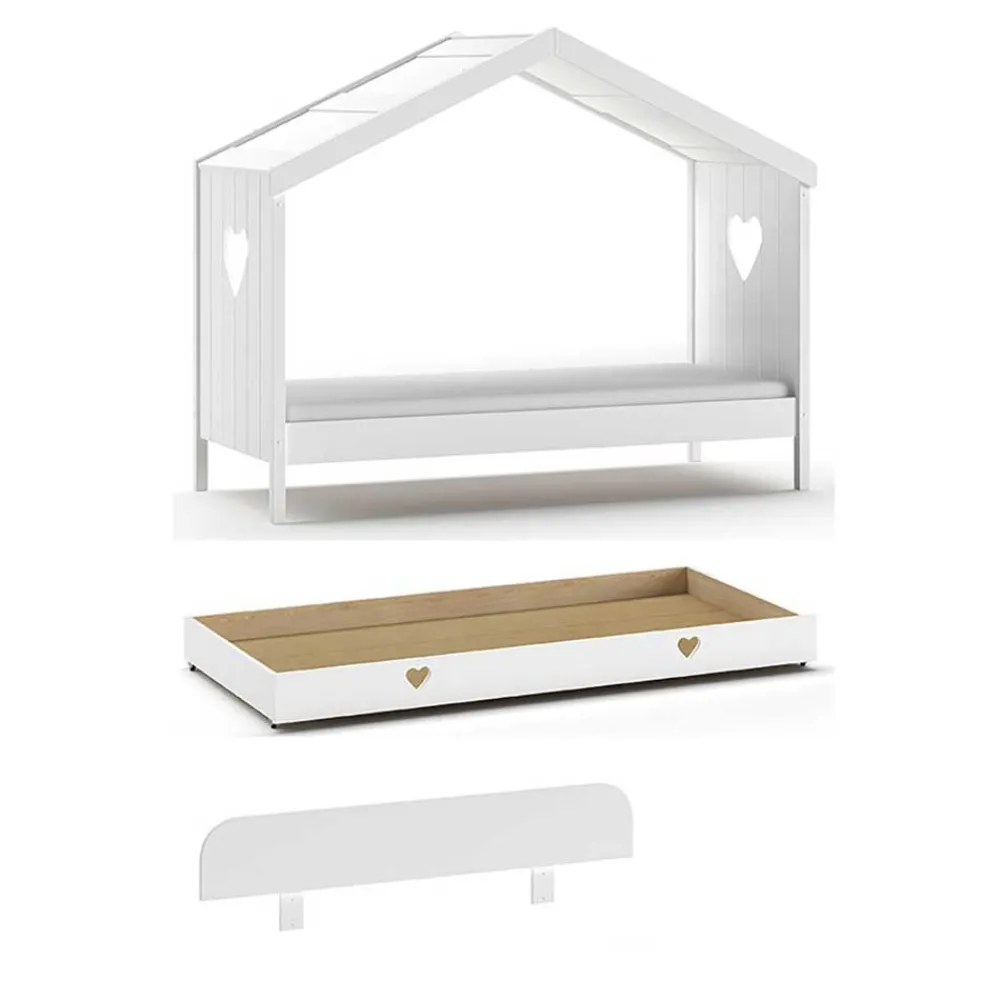 - Bettschubkasten mit zwei Herz-Grifflöchern, maximale Belastbarkeit 50 kg