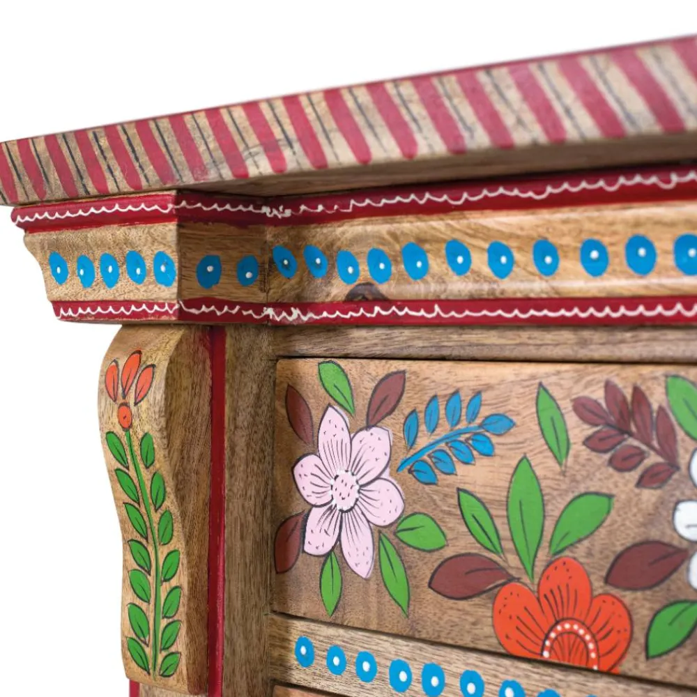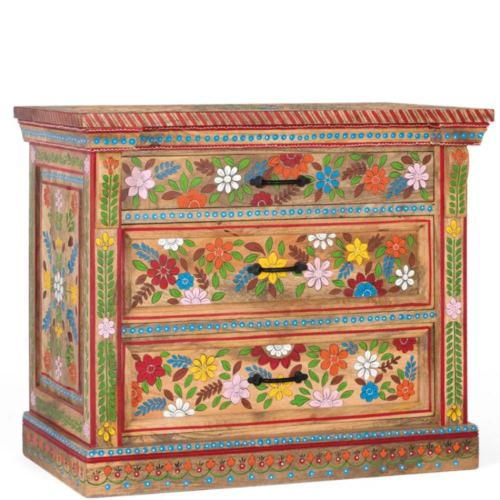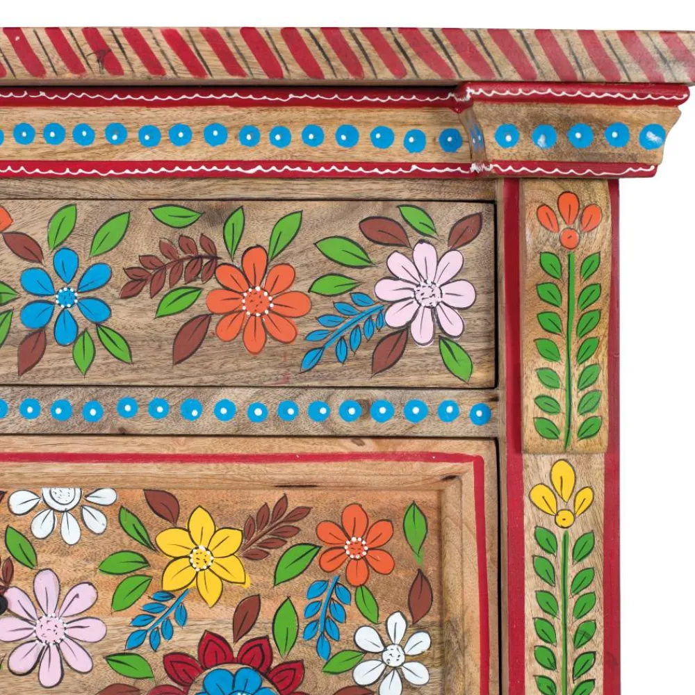 - Attraktive Folklore Kommode in Mangoholz Naturfarben und Bunt