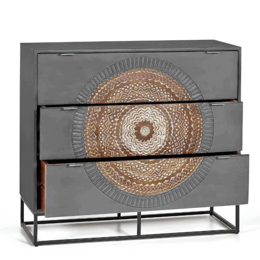 - Aus Mangobaum Massivholz und Metall hergestellt