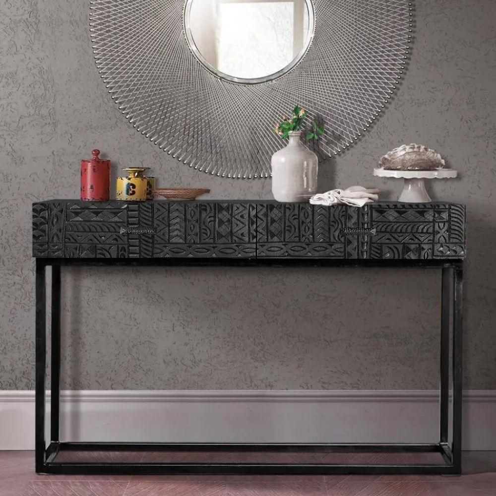 - Edler Konsolentisch in Walnussbraun und Schwarz