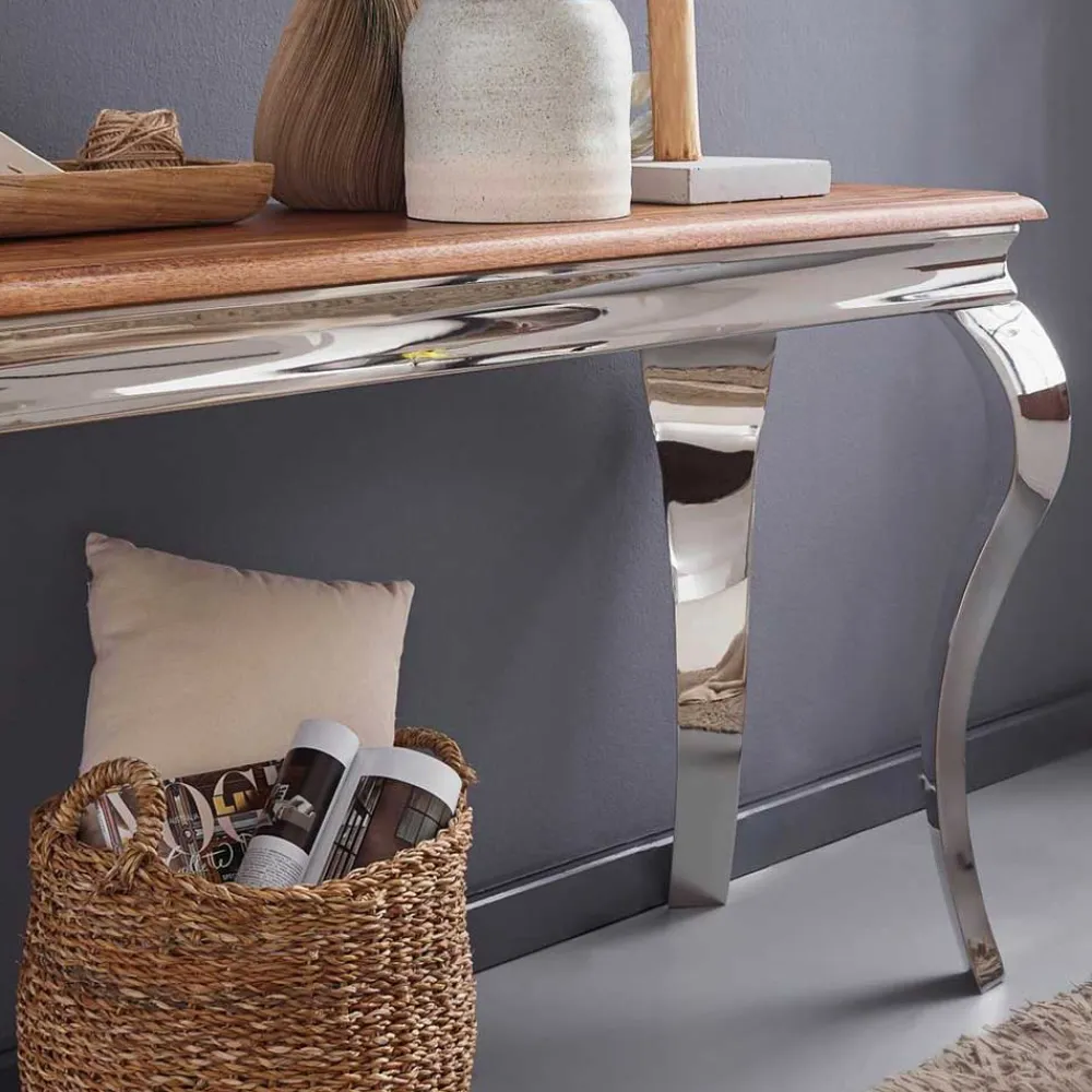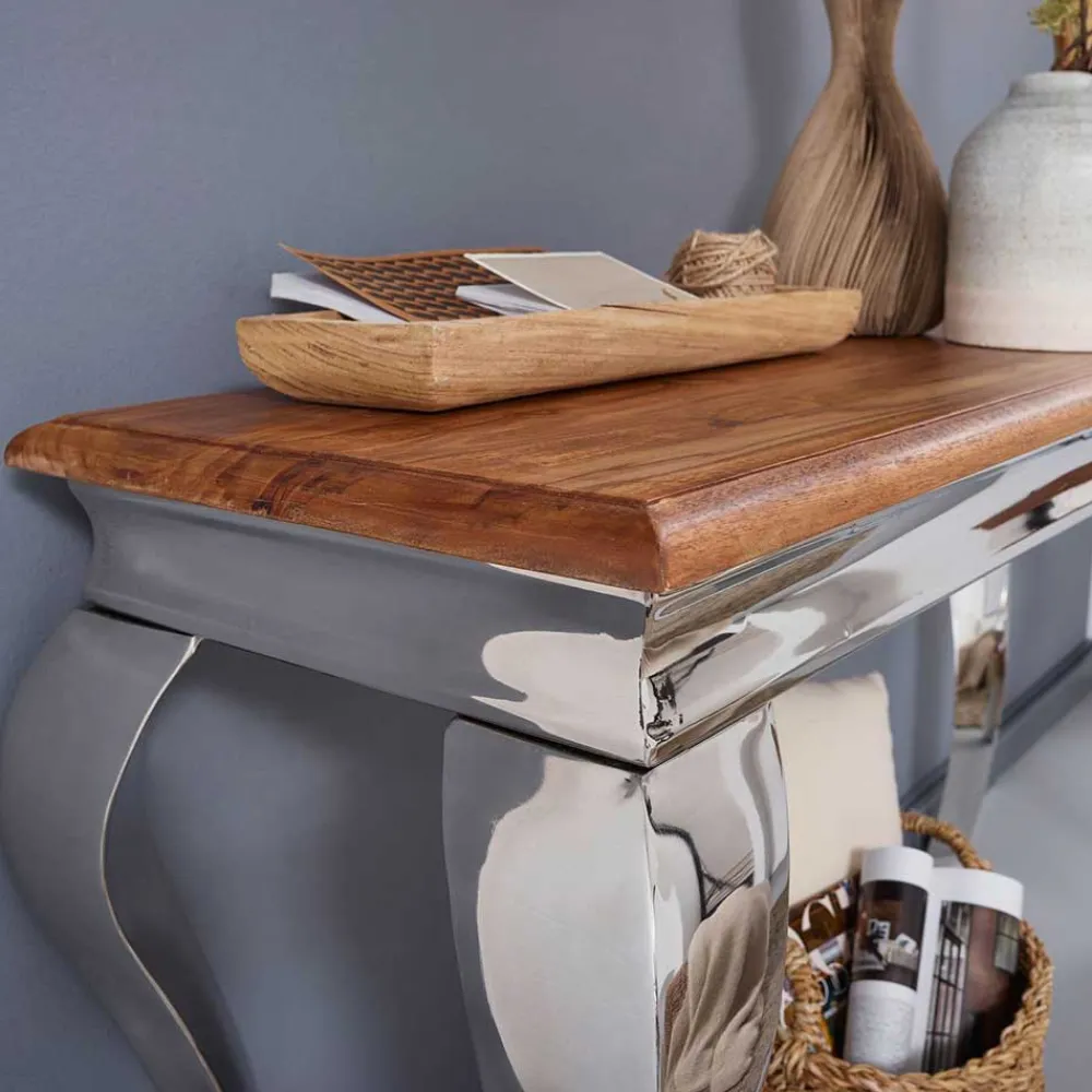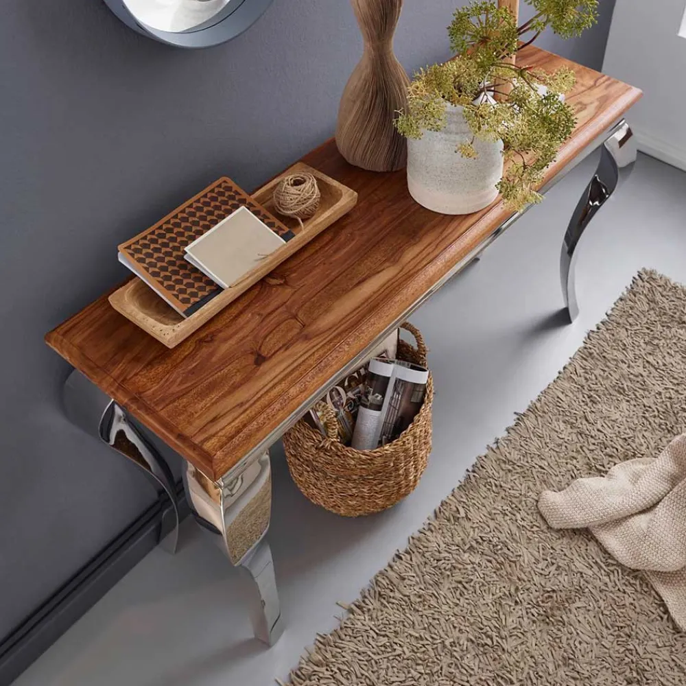 - Orientalisch anmutender Konsolentisch in Sheesham- und Silberfarben